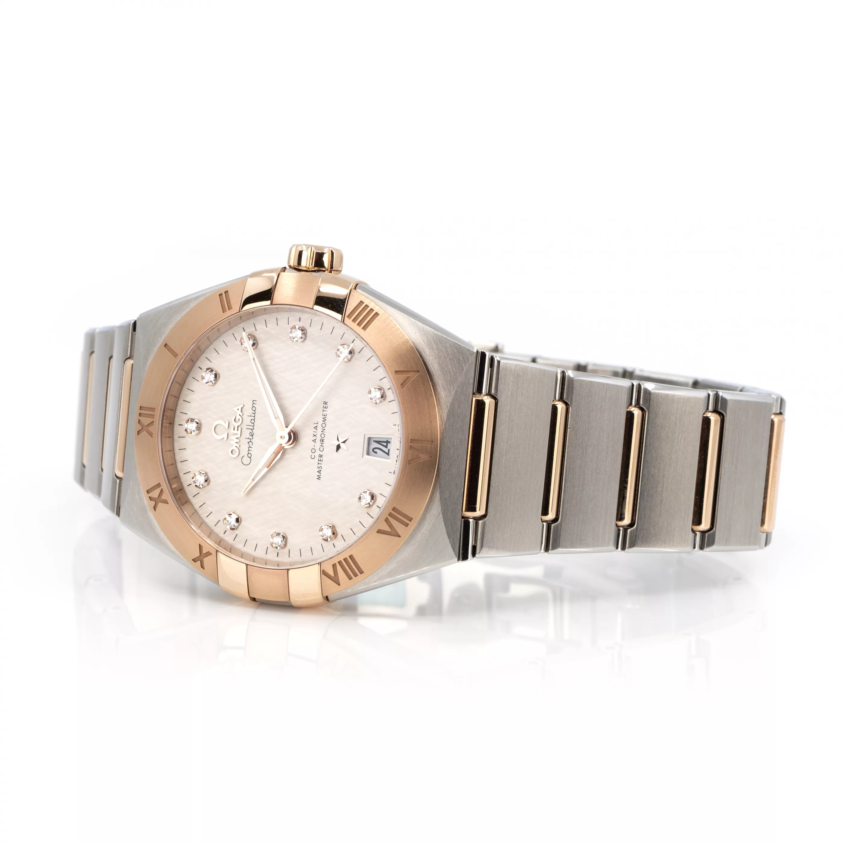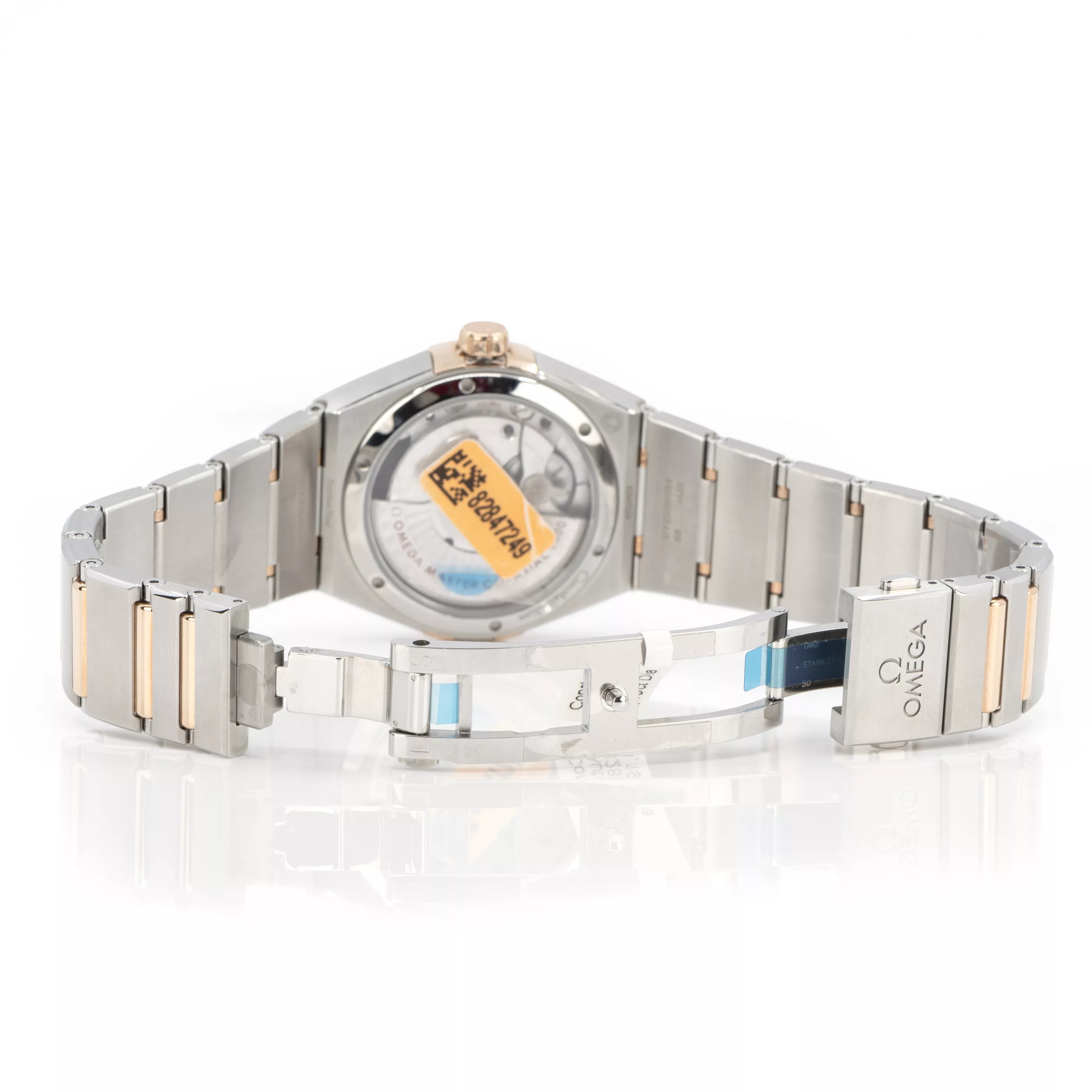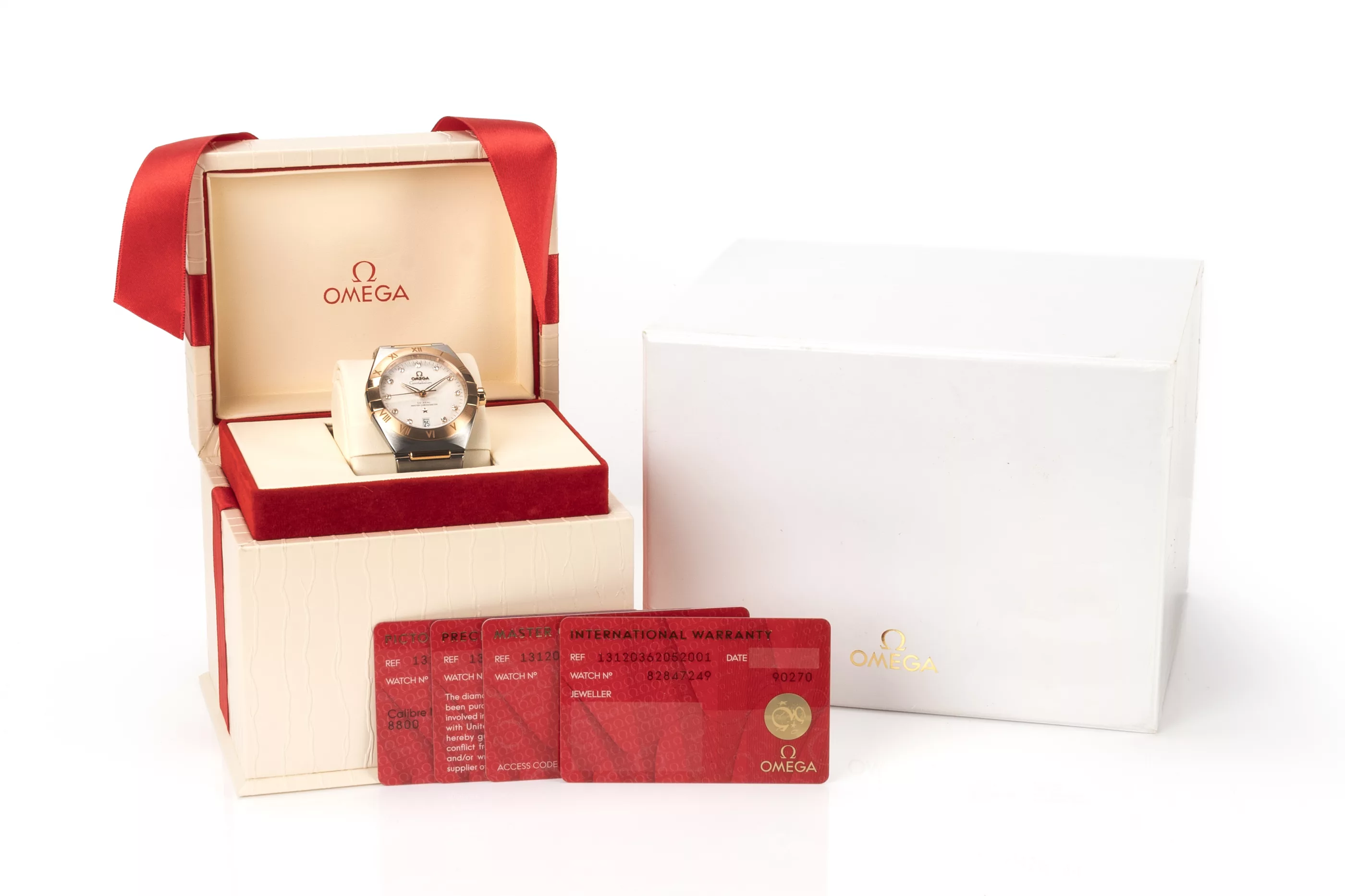 Full-Set, Jahr 2019, Quarzwerk, Ref.-Nr. 13120362052001 | Serien-Nr. 82847249, Co-Axial Master Chronometer mit skelletiertem Gehäuseboden, Gehäuse Edelstahl/750 Roségold, Zifferblatt mit 11 Diamant-Indizes, gesamt ca. 0,19 ct, G, if-vvs, Durchmesser 36 mm, Original-Armband, Stahl/Roségold, Original-Faltschließe, Stahl, Länge 18 cm, Gesamtgewicht ca. 153,5 g, Funktion gangbar, geprüft, Zustand neu, mit Garantie ab Kaufdatum, mit Original-Box, -Umverpackung und -Papieren,