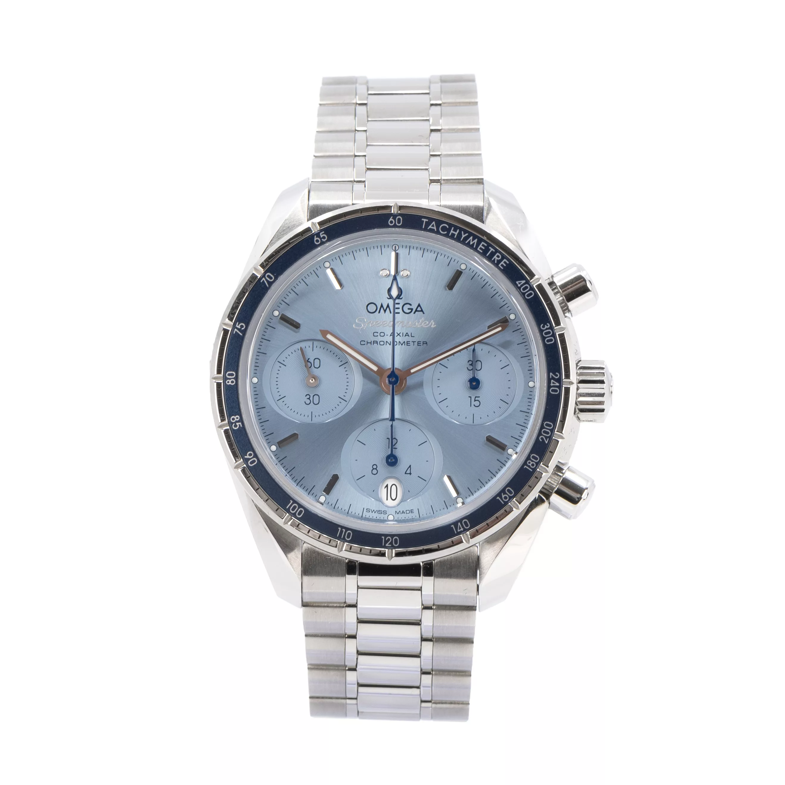 Full-Set, Jahr 2022, Automatik, Ref.-Nr. 32430385003001 | Serien-Nr. 84218327, Co-Axial Chronometer, Tachymeter, blaues Zifferblatt, Datum bei 6 Uhr, Gehäuse Stahl, Durchmesser 38 mm, Original-Armband, Stahl, Original-Doppelfaltschließe, Stahl, Länge 15 cm, Gesamtgewicht ca. 131,8 g, Funktion gangbar, geprüft, Zustand neu, mit Garantie ab Kaufdatum, mit Original-Box, -Umverpackung und -Papieren,
