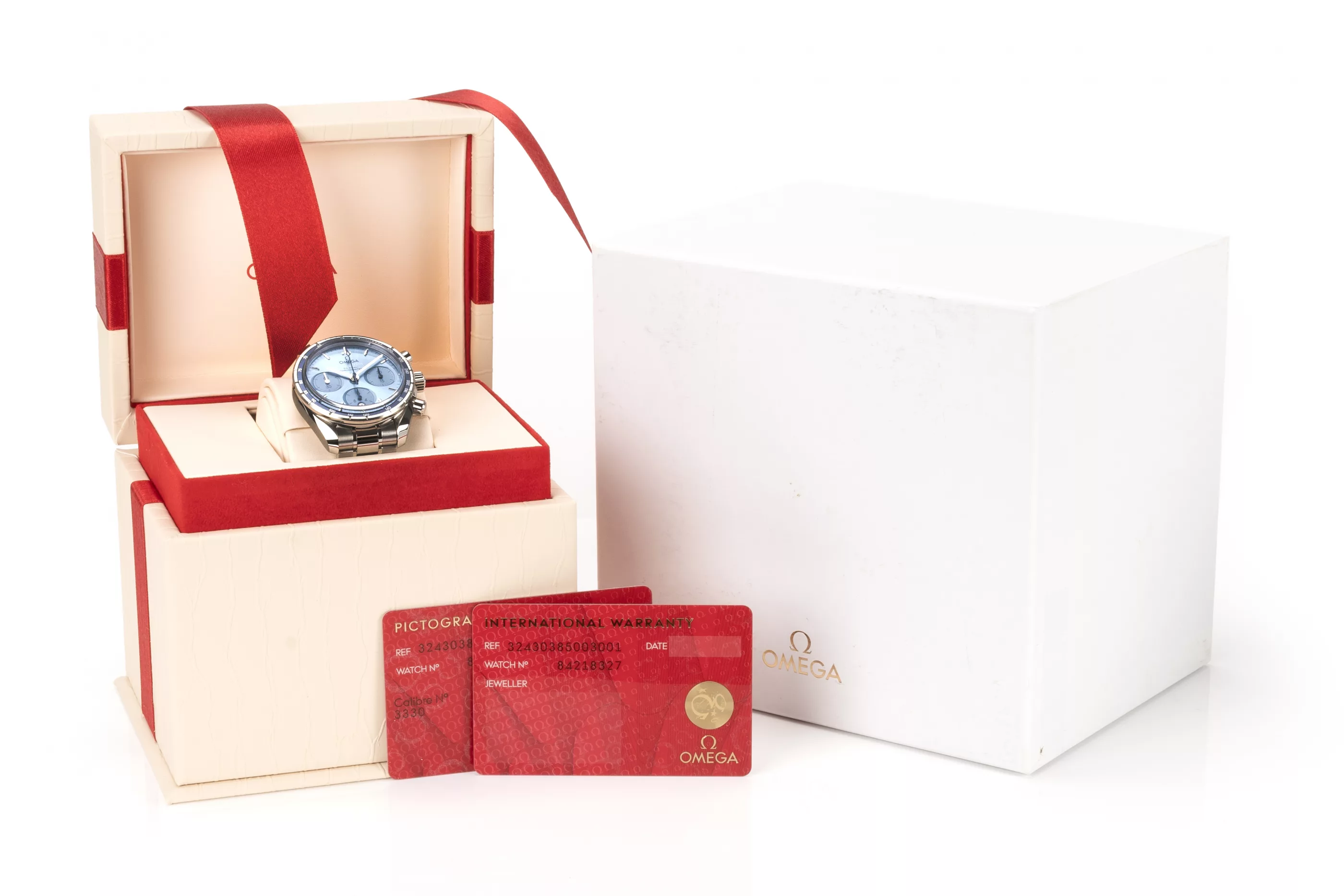 Full-Set, Jahr 2022, Automatik, Ref.-Nr. 32430385003001 | Serien-Nr. 84218327, Co-Axial Chronometer, Tachymeter, blaues Zifferblatt, Datum...