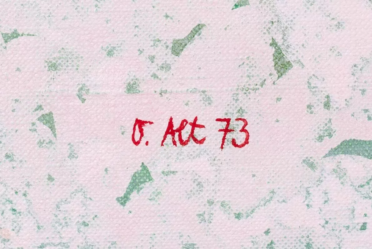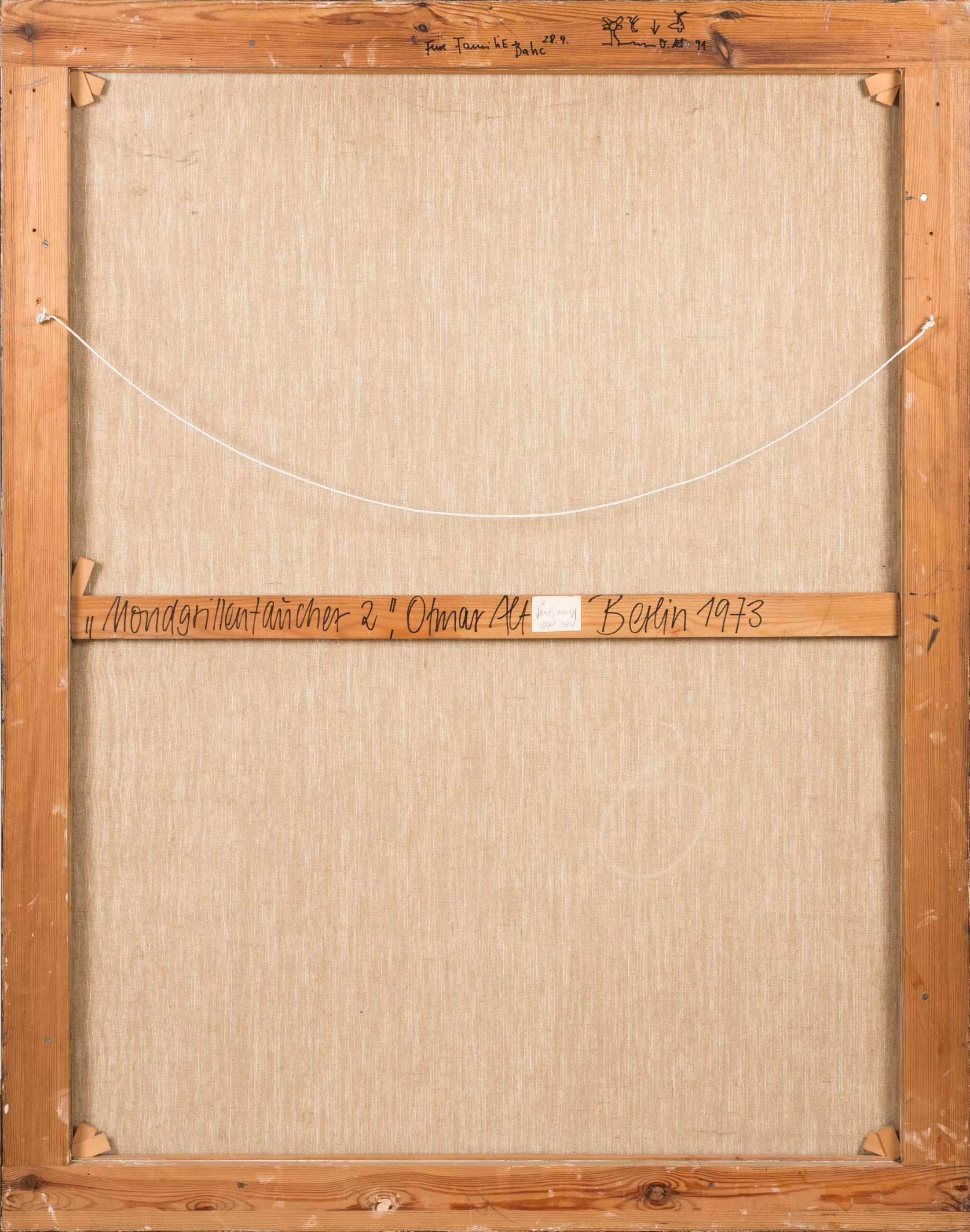 'Mondgrillentaucher 2', acrylic on canvas, 128 cm x 100 cm canvas dimensions, signed, dated 73, signed on verso, Berlin 1973 located and dated, titled, dedicated