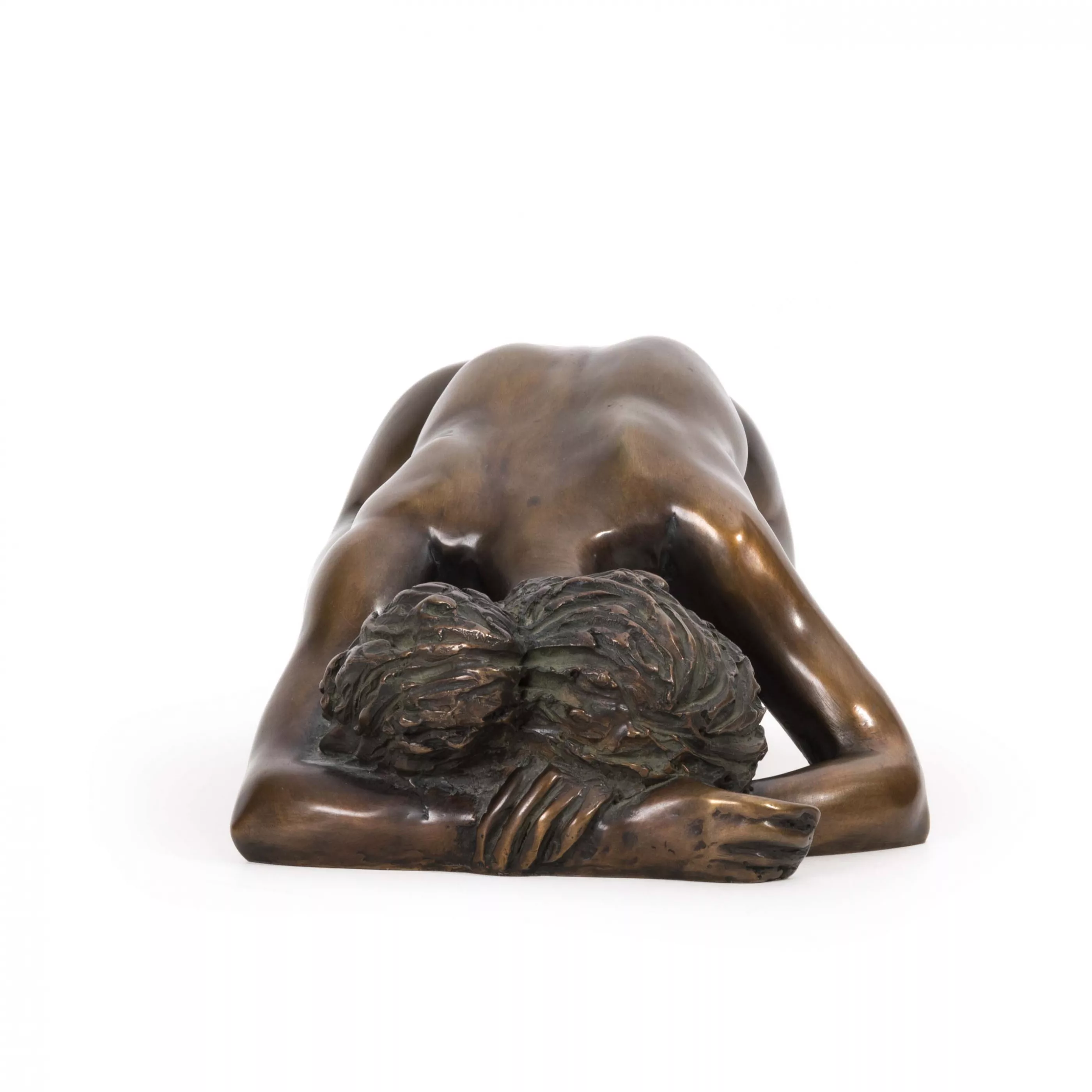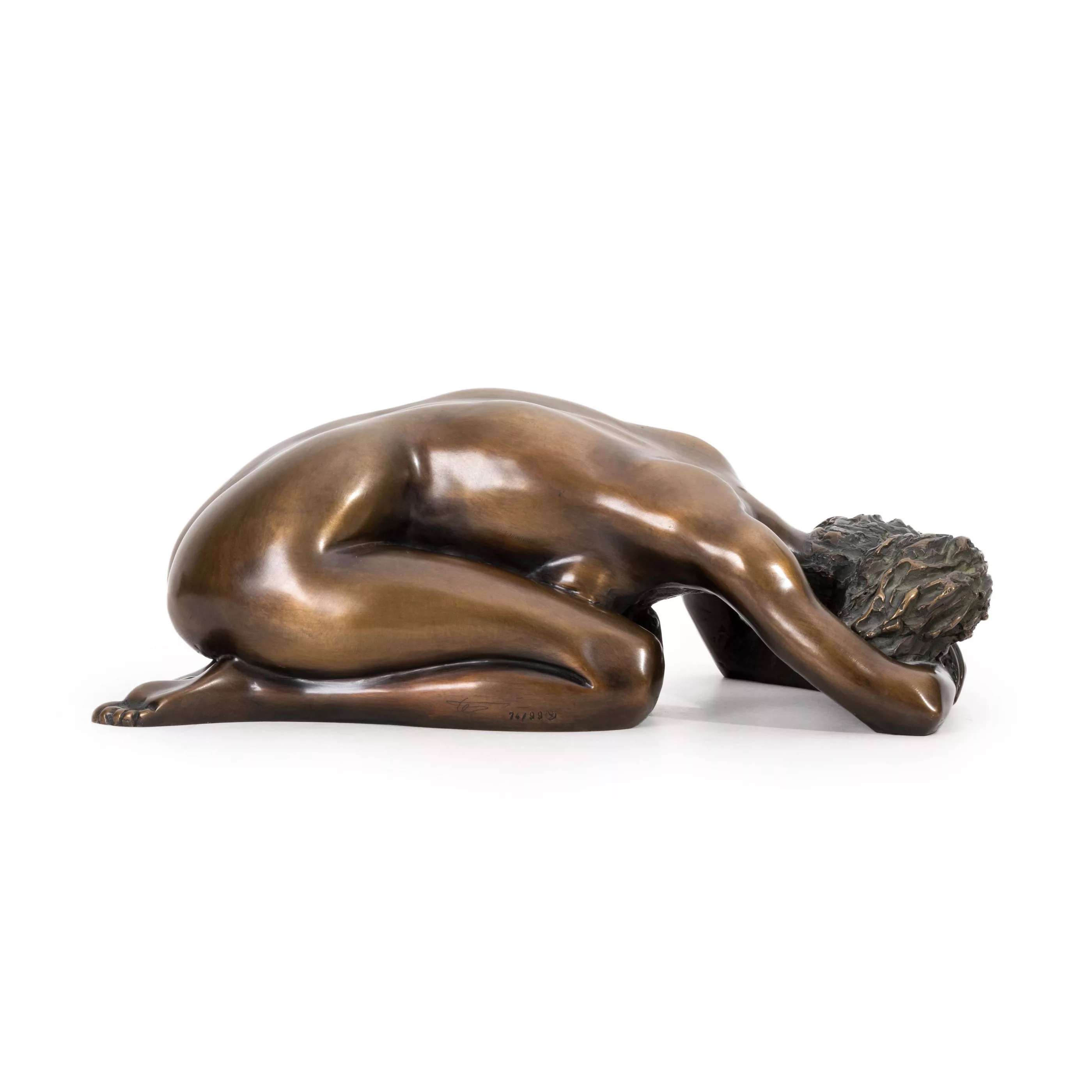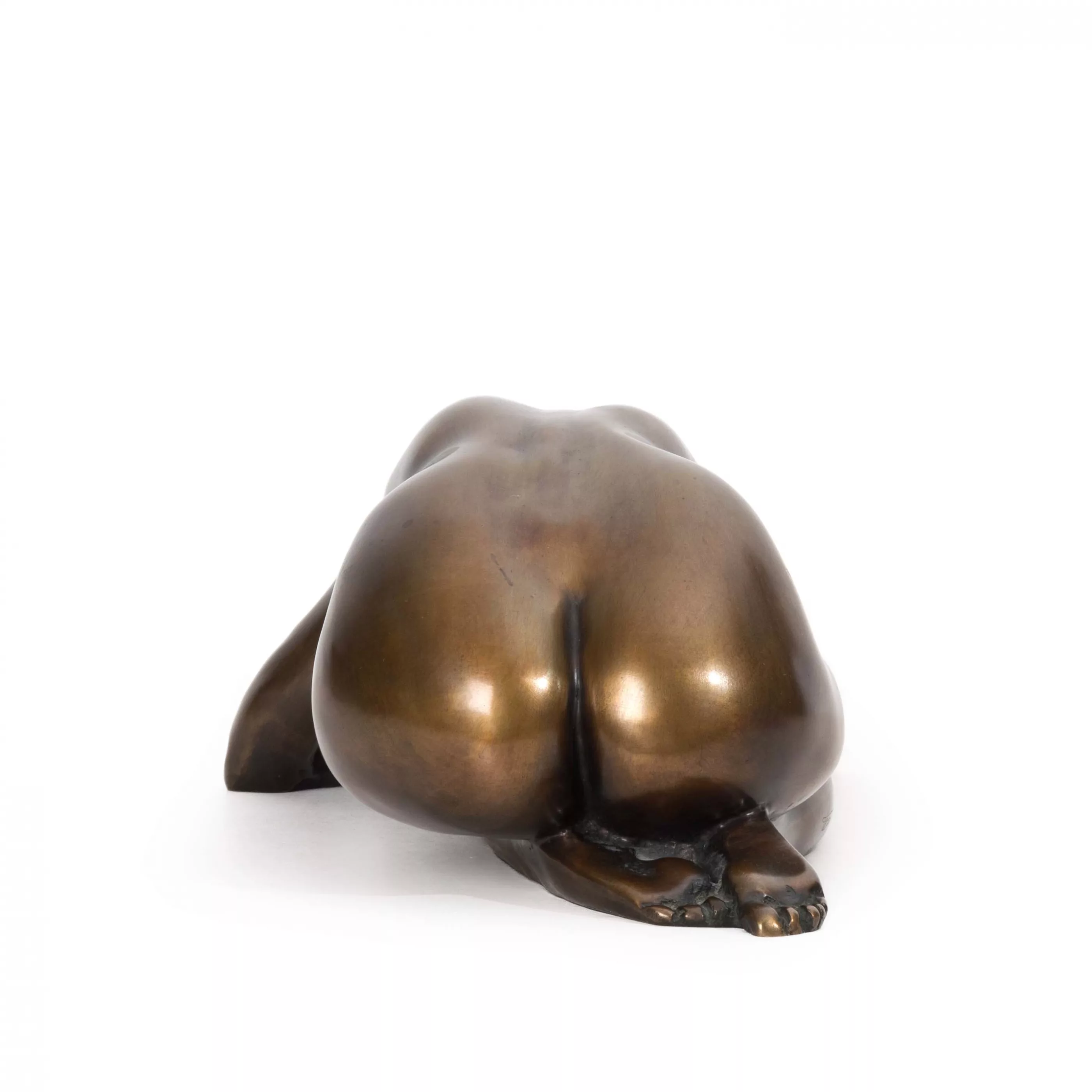 Liegender weiblicher Akt, Bronze, goldbraun patiniert, 36 cm x 20 cm x 13,5 cm, im Guss signiert, 74/99 nummeriert, Gießerste