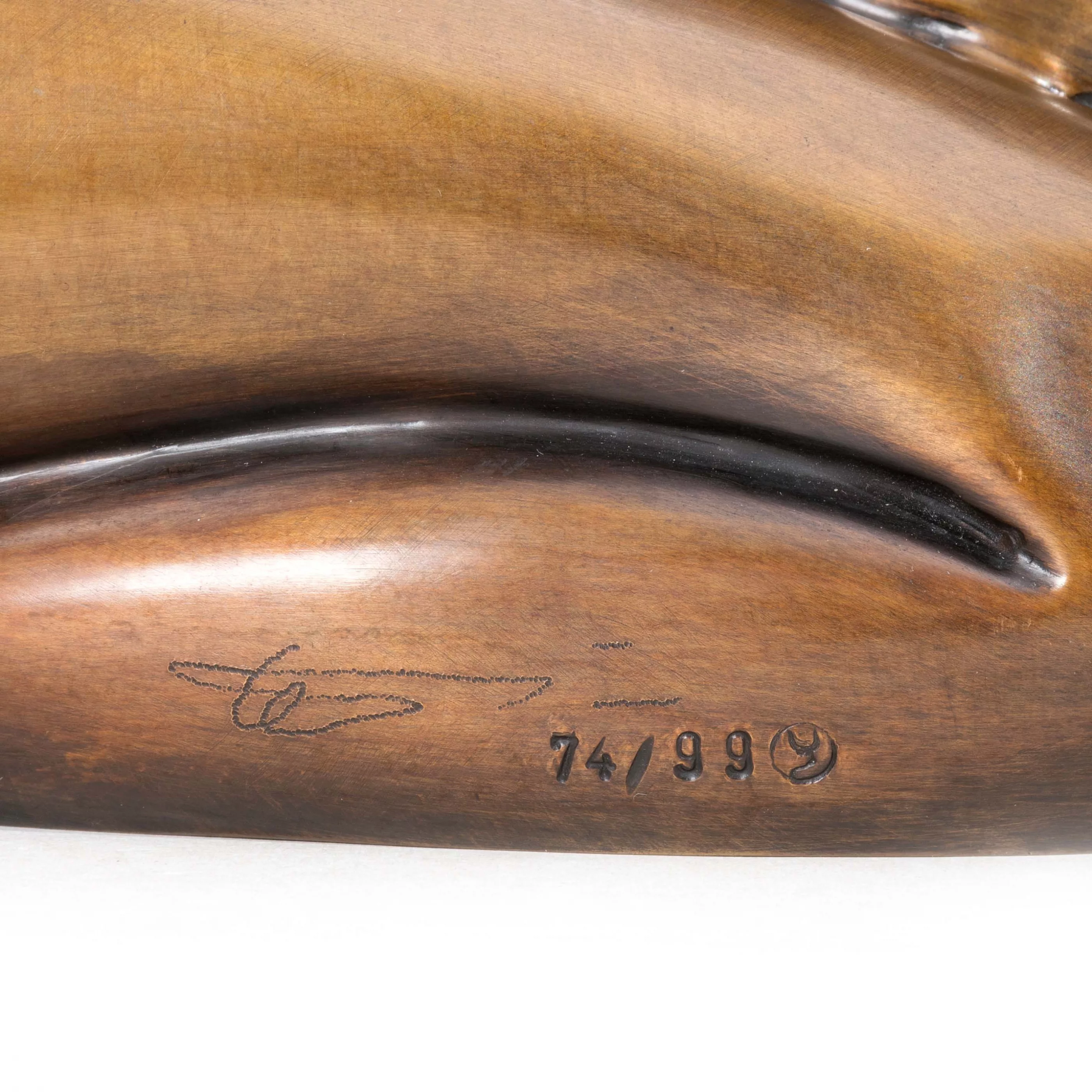 Lying female nude, bronze, golden-brown patinated, 36 cm x 20 cm x 13.5 cm object dimensions, signed in the cast, numbered 74/99, foundry stamp