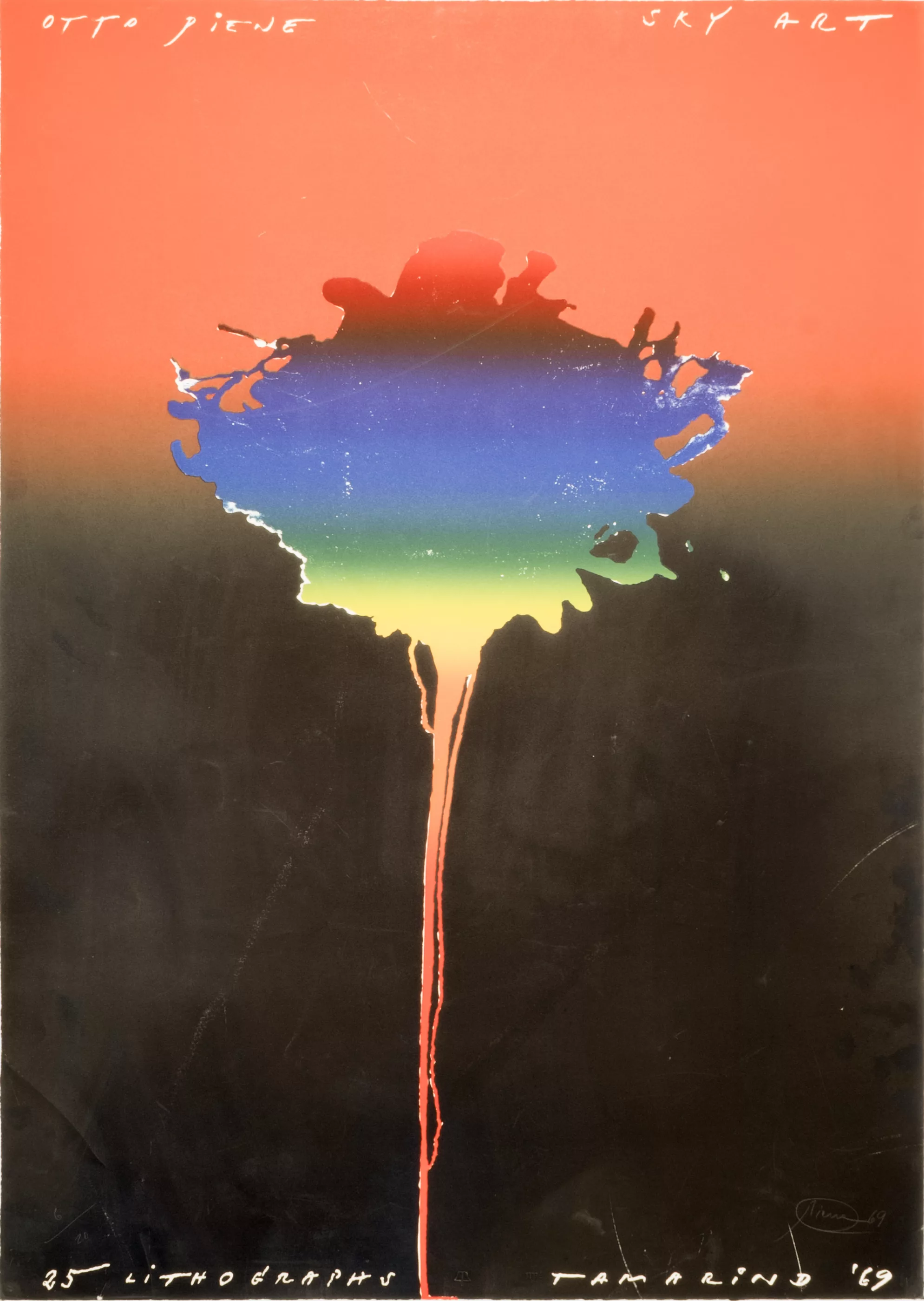 Portfolio work 'Sky Art', 25 lithographs on laid paper, approx. 89 cm x 63 cm sheet dimensions, each signed, 69 dated, numbered 6/20, sheet 22 and 24 each numbered 13/20, printed and edited by Tamarind Lithography Workshop, Los Angeles, sheets 22 and 24 were missing and replaced by Otto Piene in 2003, a copy of the document enclosed, title page with scratches, minimally bumped, occasional pinholes, two sheets trimmed, partial handling marks, literature: cat. rais. Rottloff 33-57
