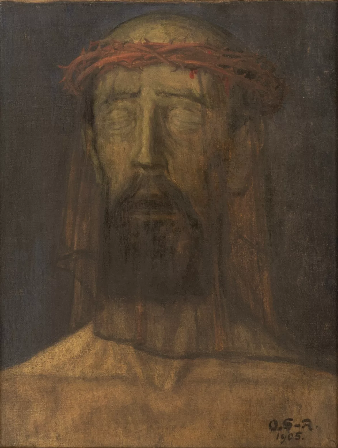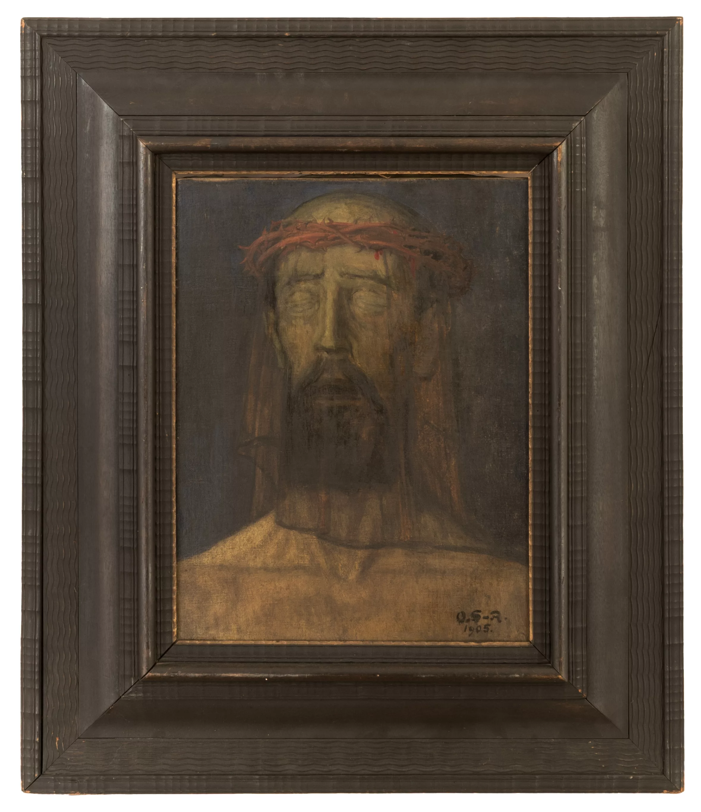 Christus mit der Dornenkrone, Öl auf Leinwand, 43 cm x 33 cm Leinwandmaß, monogrammiert, 1905 datiert, verso auf dem Keilrahmen signiert,...