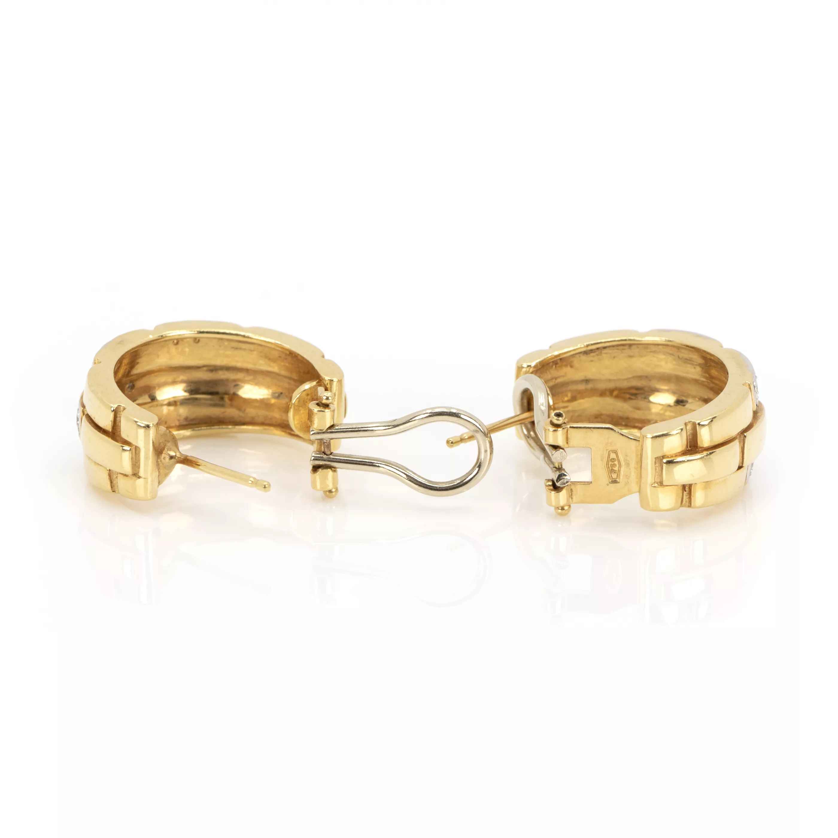 750 Gelb- und Weißgold, punziert, jeweils mit 18 Diamanten im Brillantschliff, gesamt ca. 0,36 ct, G-H, si, Ø 2,2 cm, Gewicht ca. 16,8 g