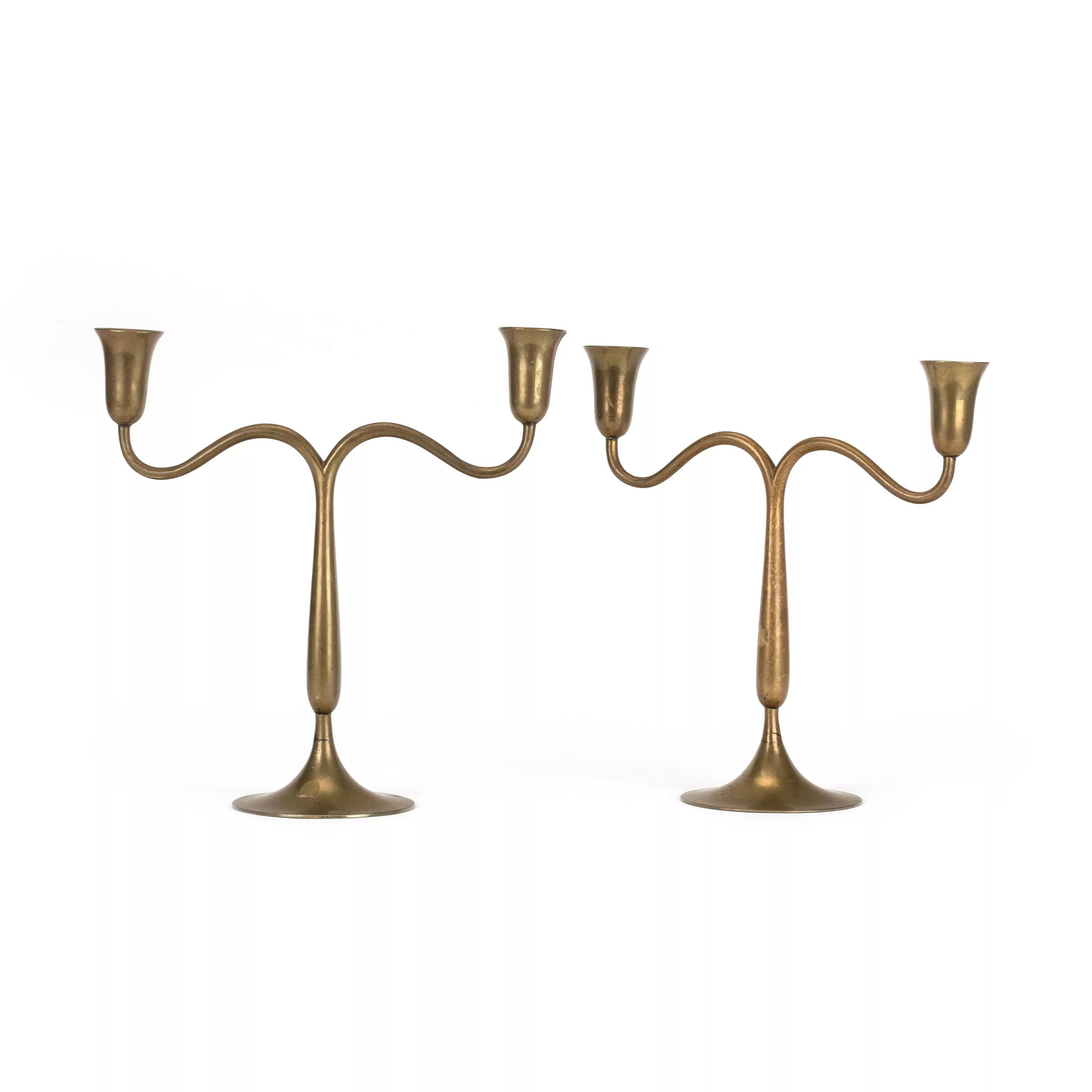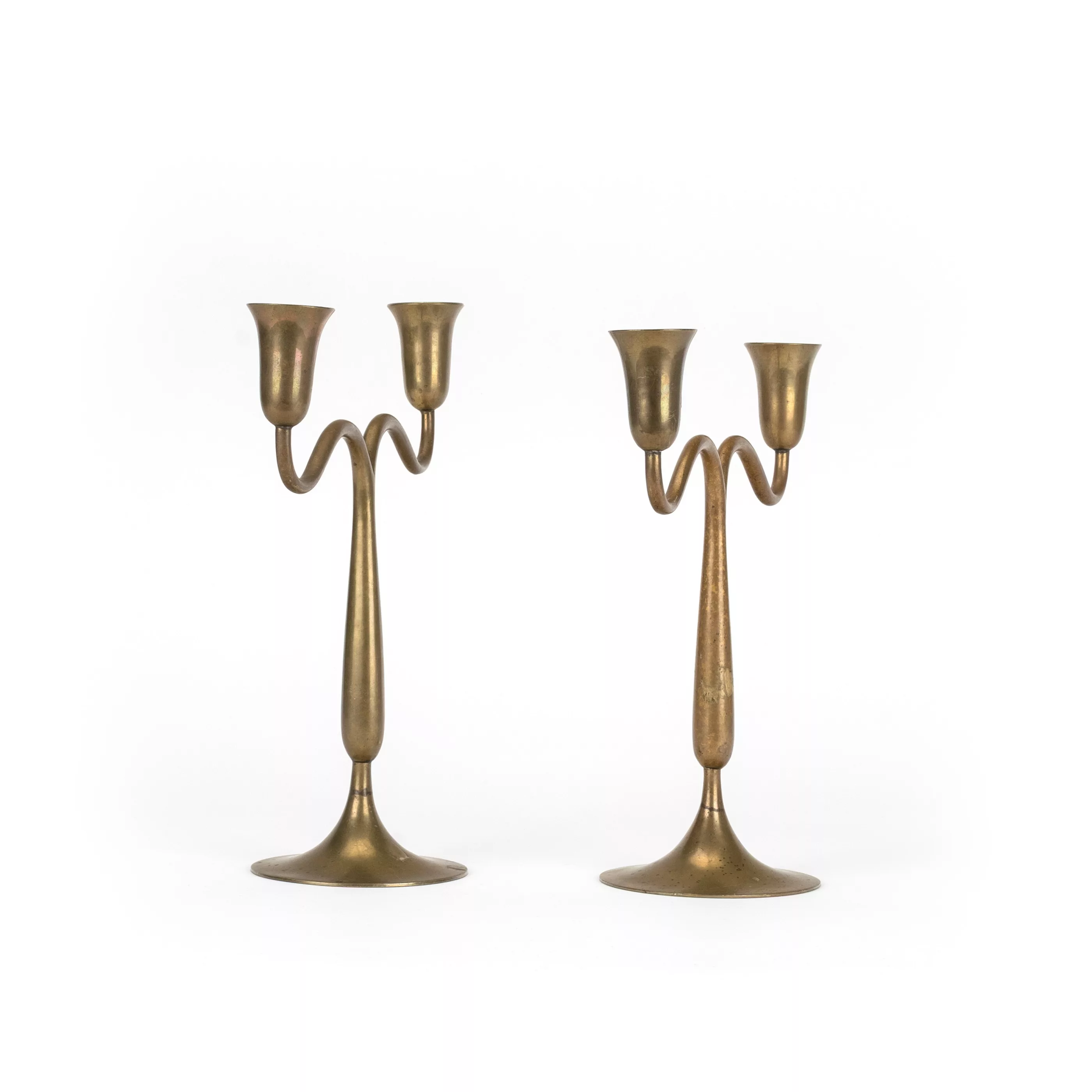 Austria, mid 20th century, designed by Karl Hagenauer (1898 Vienna - 1956 Vienna) and manufactured by the 'Werkstätte Hagenauer', polished brass, height 23.5 cm, 1 candlestick inscribed 'Hagenauer Wien' on the underside, each with manufacturer's mark and inscribed 'Made in Vienna Austria', condition A/B, minimal signs of age and wear