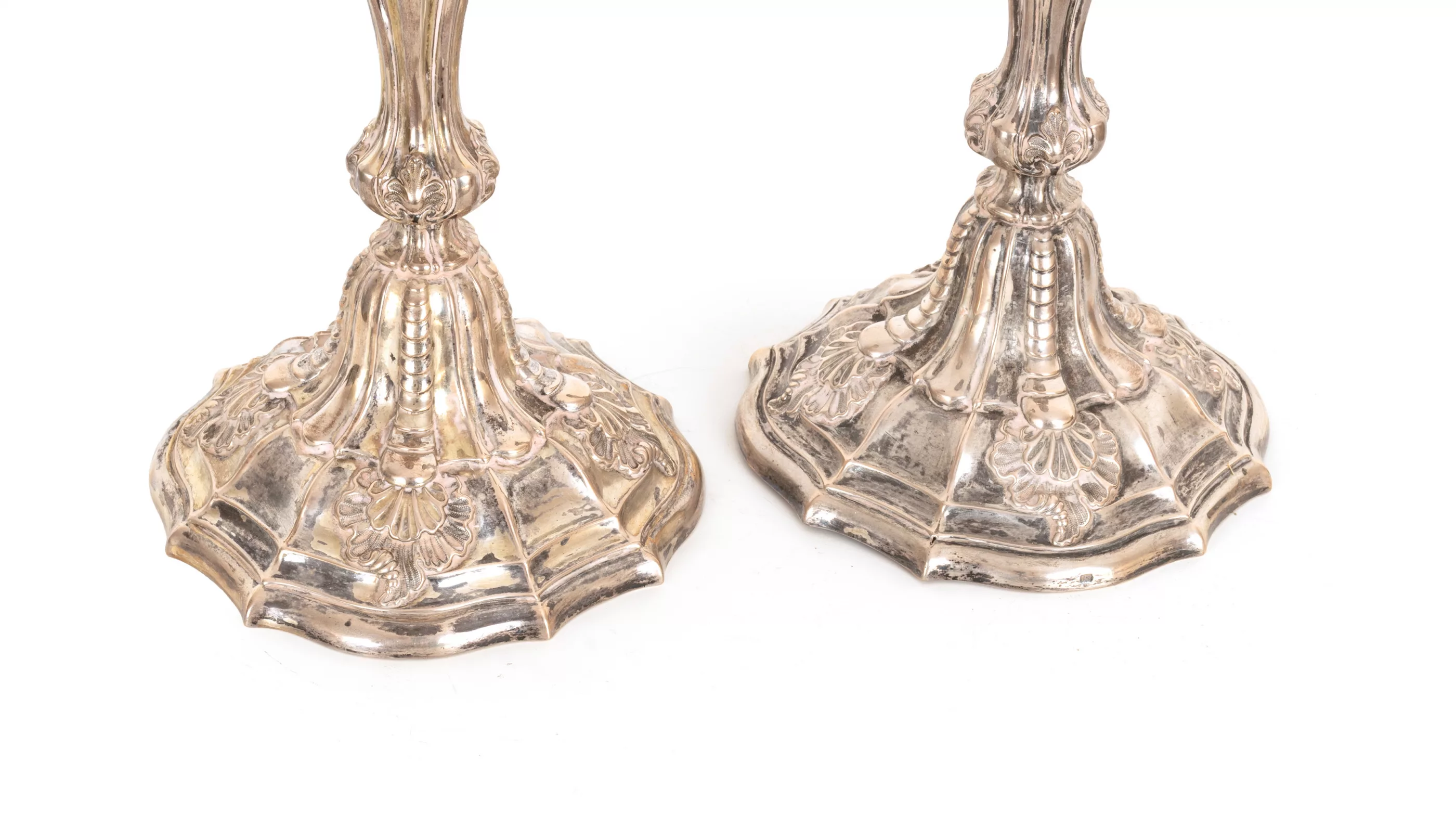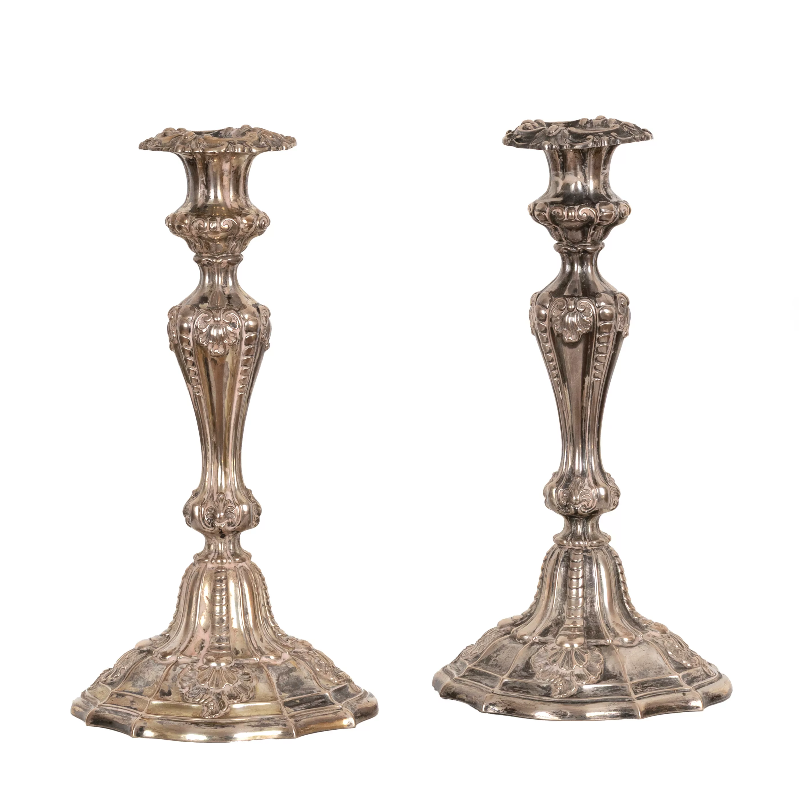 A pair of Neo-Rococo silver candlesticks