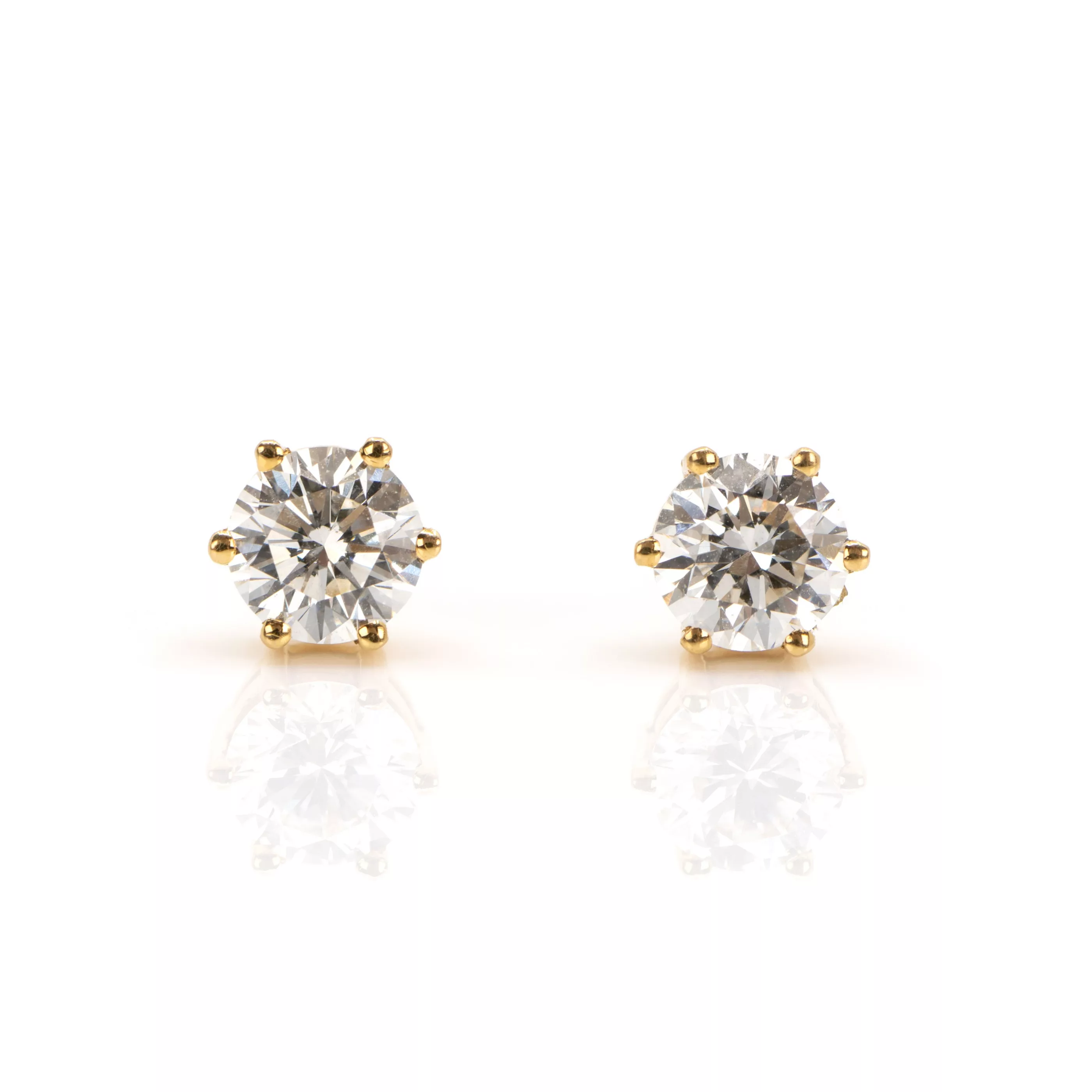 Paar Ohrstecker mit Brillantbesatz750 Gelbgold, punziert, jeweils 1 Diamant im Brillantschliff, gesamt ca. 1,00 ct, G-H, vs-si, Ø Stecker...
