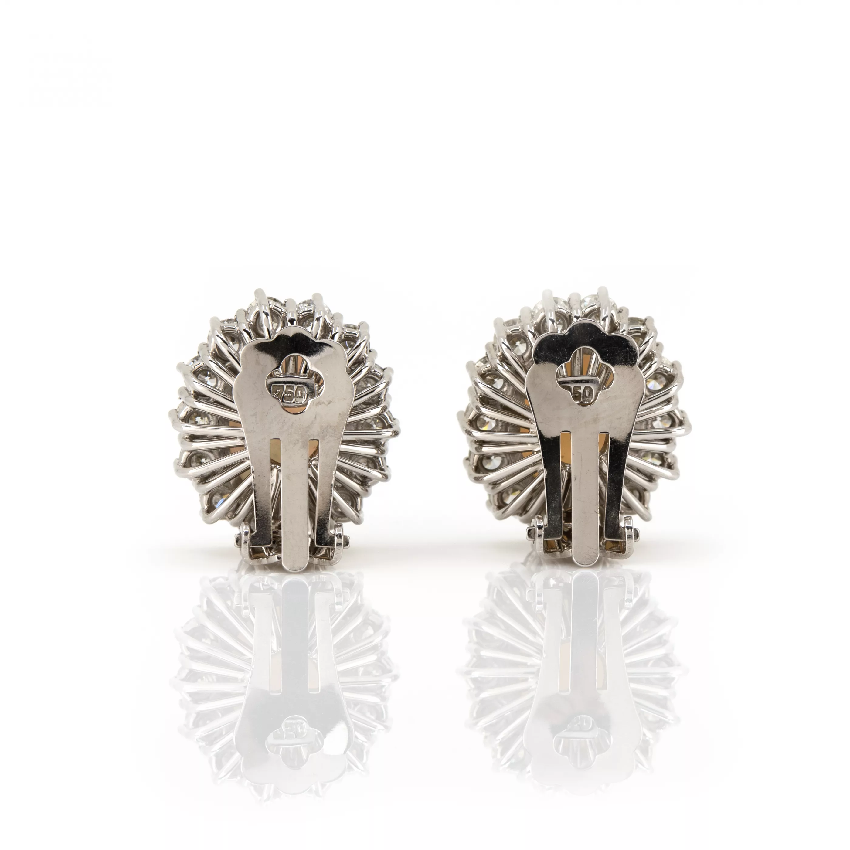 750 Weißgold, punziert, jeweils 14 Diamanten im Brillantschliff, gesamt ca. 2,80 ct, G, vvs, die beiden Vollopale ca. 11,9 x 9,70 mm,...