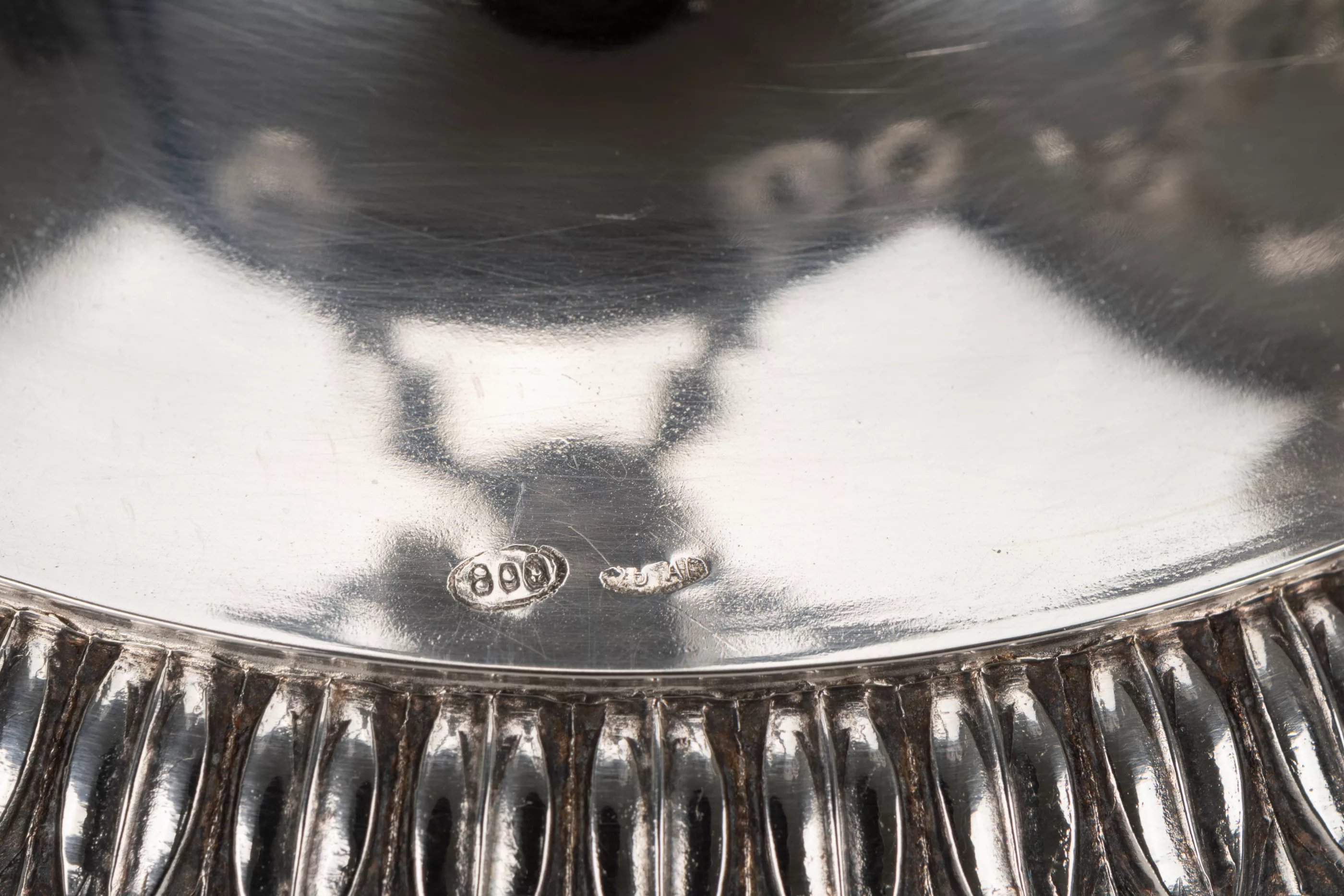 2-piece, Italy, 1944-1968, 800 silver, hallmarked, fineness, numbering and letters AP or AB, each with 5 flames, fluted shaft on round stand, palmette and rocaille decoration, screwed spouts, height 43 cm, total weight approx. 3,040 g, some spouts minimally bent