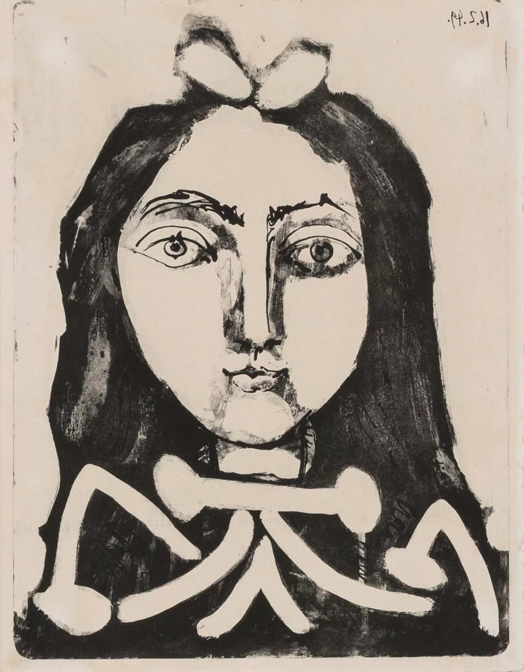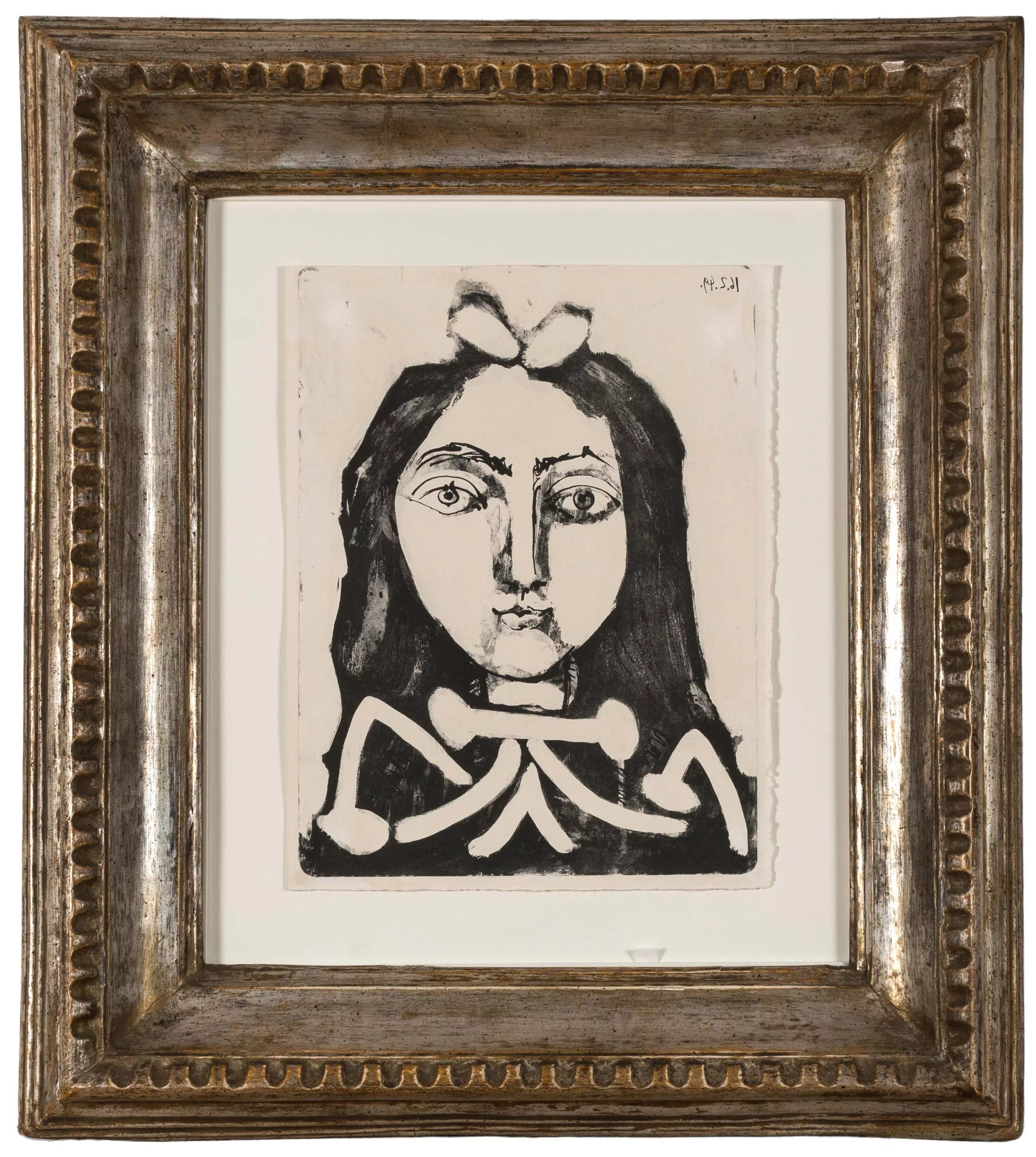'Second portrait de jeune fille', Zincographie auf Bütten, 39,5 cm x 30 cm Plattenmaß, 41 cm x 31 cm Blattmaß, im Druck 16.2.49 datiert, eines von 5 Probeexemplaren, montiert, Montierung scheint partiell durch, partiell leicht nachgedunkelt, Literatur: Wvz. Mourlot 152