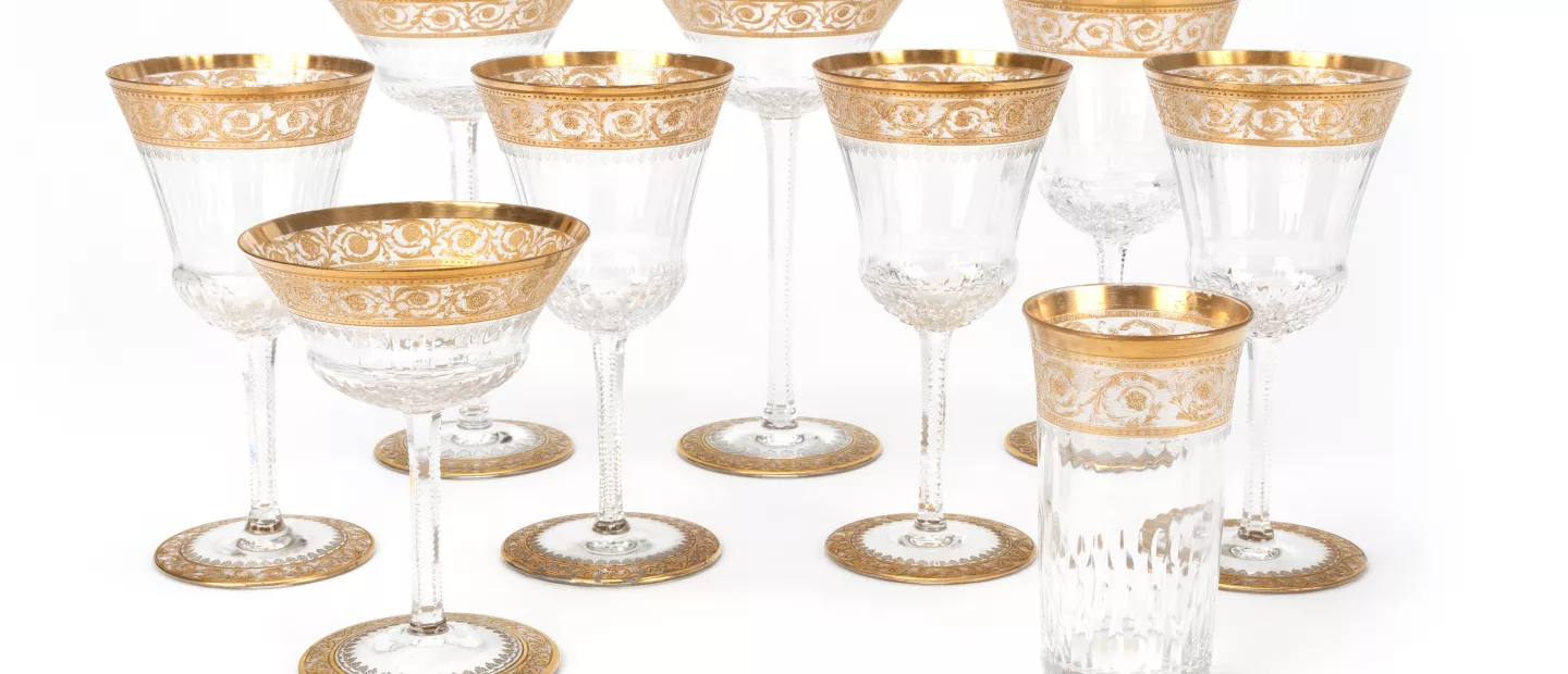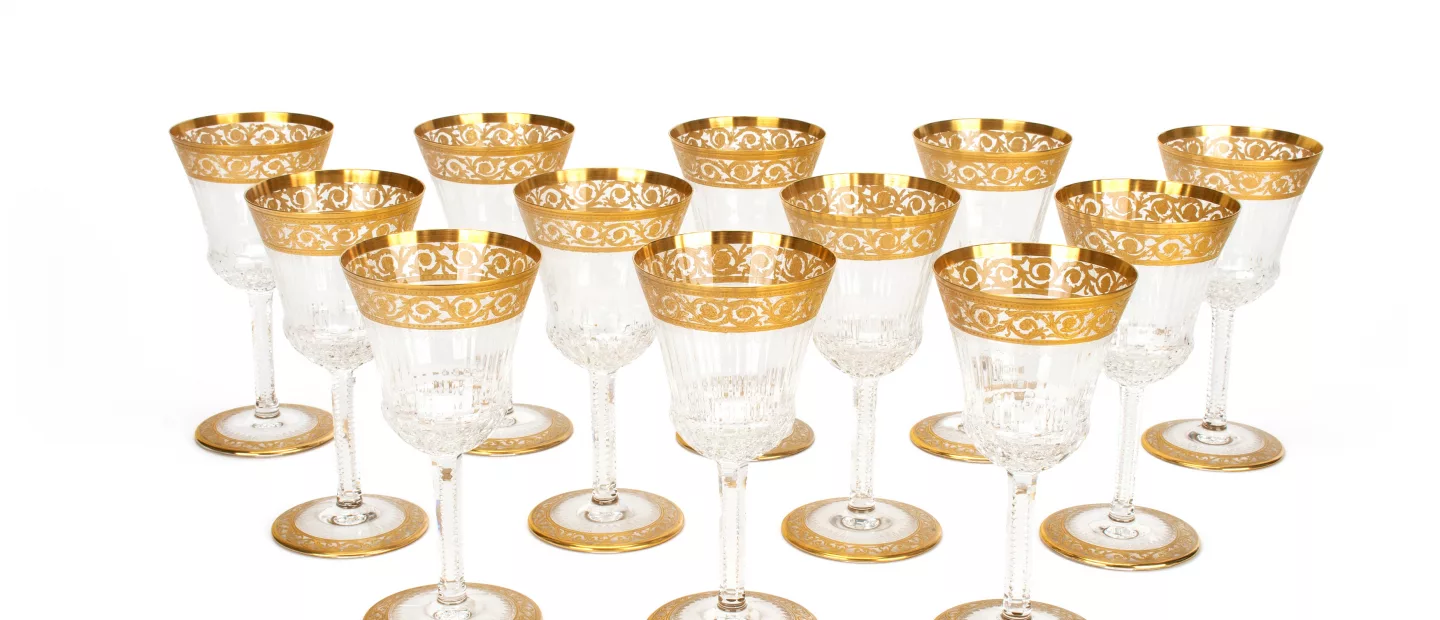 St. Louis Set Weissweingläser 'Thistle Gold': 12-tlg., St. Louis, Frankreich, mundgeblasenes, handgeschliffenes Kristallglas,...