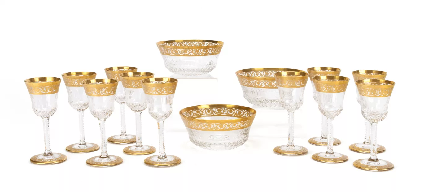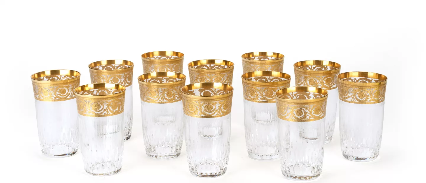 St. Louis Set Trinkgläser 'Thistle Gold': 12.-tlg, St. Louis, Frankreich, mundgeblasenes, handgeschliffenes Kristallglas, vergoldet,...