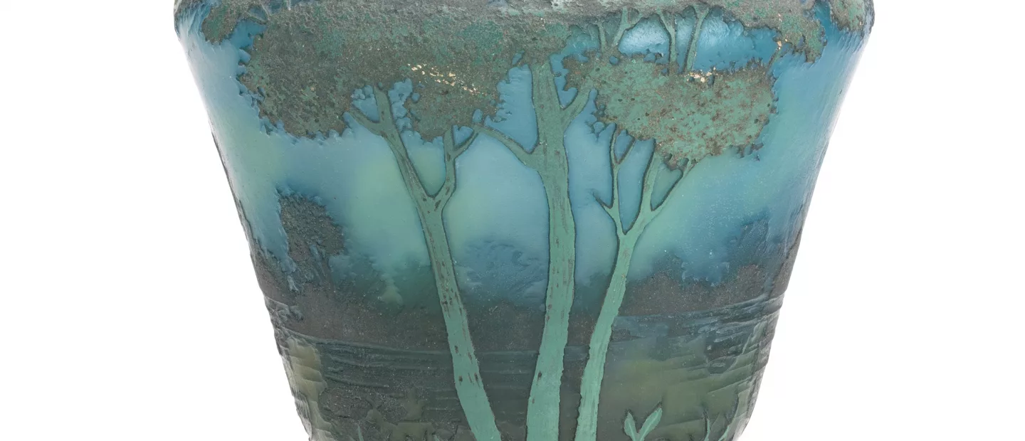 Daum Nancy Fußvase ‘Paysage lacustre’