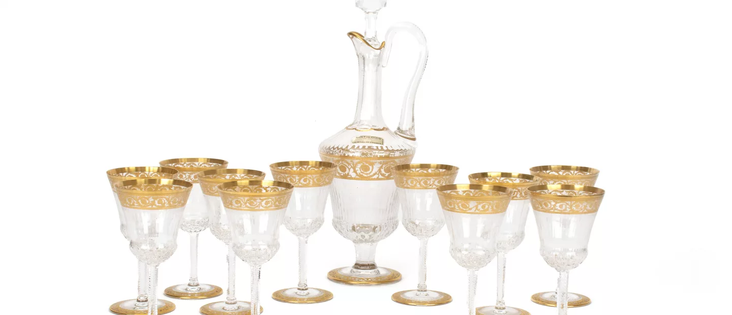 St. Louis Set Weingläser und Weinkaraffe ‘Thistle Gold’