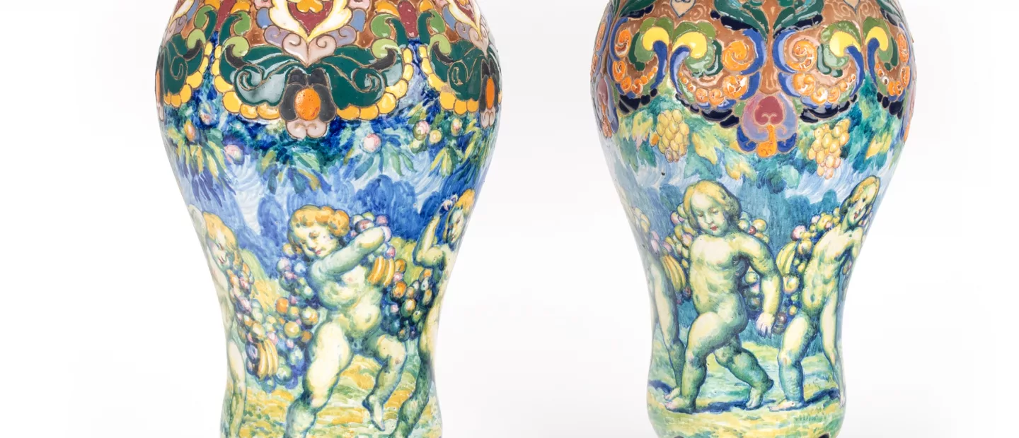 Paar Majolikavasen von José Jorge Guardiola Bonet: José Jorge Guardiola Bonet (Barcelona, 1869 - 1950), 1925, Keramik, polychrom...