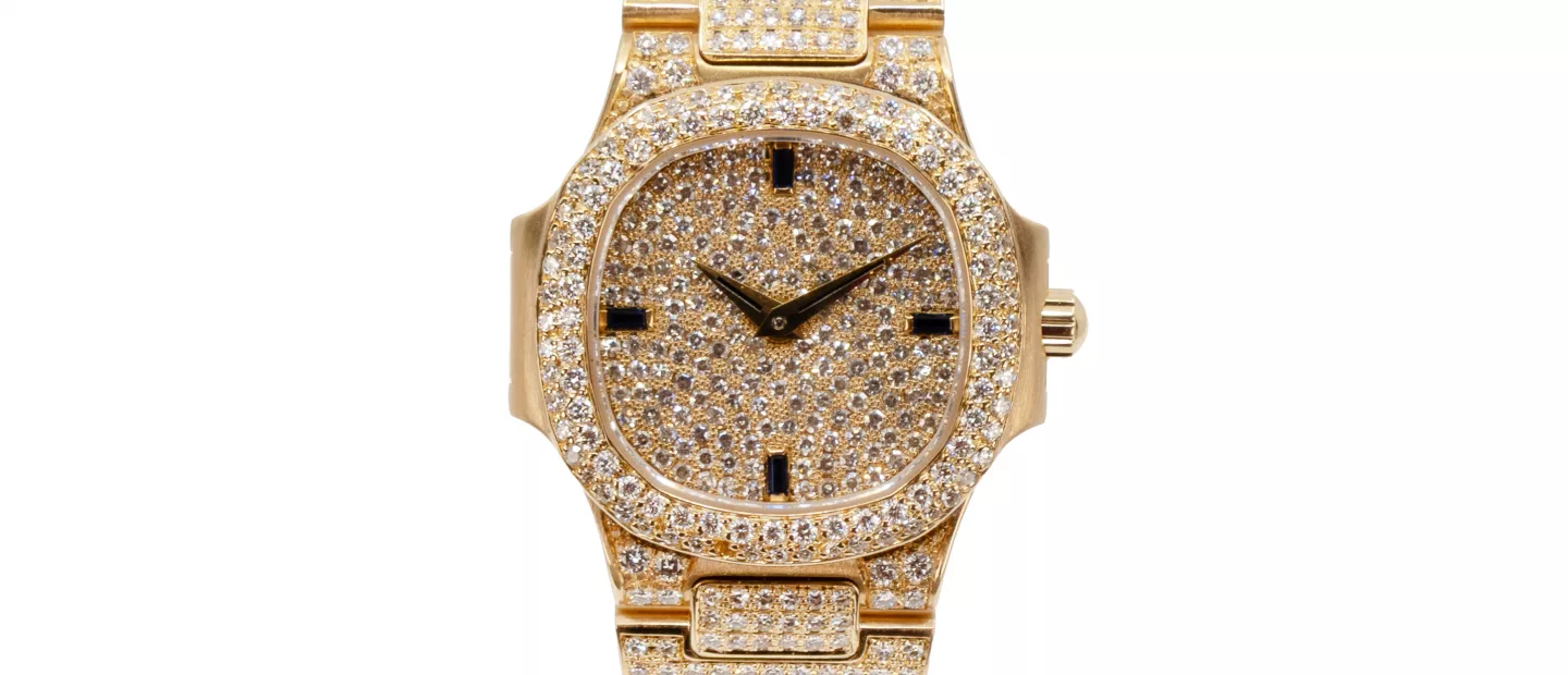 Patek Philippe Nautilus Diamantuhr: Quarzwerk, 750 Gelbgold, Zifferblatt, Lünette und Armband mit Diamanten, Zifferblatt dazu mit 4...