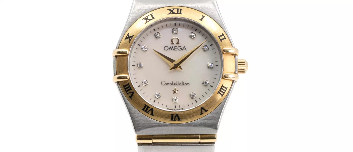 Omega Constellation: Quarzwerk, Gehäuse-Nr. 55959753, Perlmuttzifferblatt mit Diamant-Indizes, gesamt ca. 0,06 ct, Gehäuse Stahl/750...