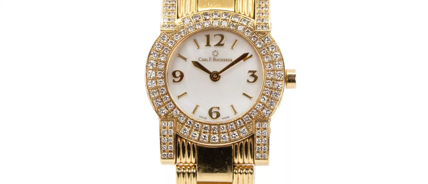 Bucherer Diamantuhr Pathos: Quarzwerk, Gehäuse-Nr. 280-563 / 50.0357, Gehäuse 750 Gelbgold, punziert, Lünette und Anstöße mit...