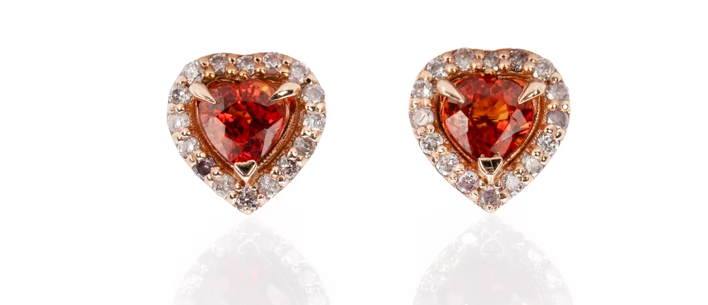 Saphir-Diamantohrstecker: 585 Roségold, punziert, insgesamt 32 Diamanten im Brillantschliff, gesamt 0,32 ct, pink, si3-pi2, jeweils...