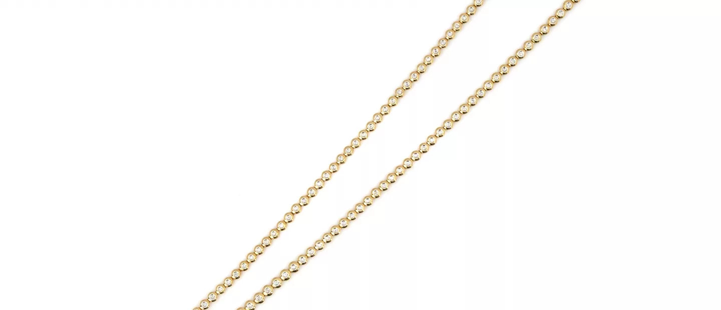 Rivière-Diamantcollier: 750 Gelbgold, punziert, 175 Diamanten im Brillantschliff, gesamt ca. 1,82 ct, H-J, vs-pi, Länge 69 cm, durch...