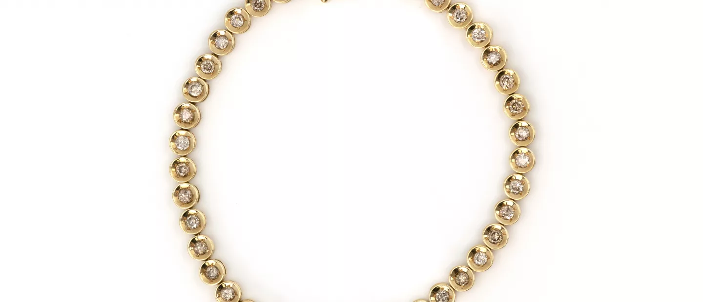 Rivière-Diamantarmband: 750 Gelbgold, punziert, 41 Diamanten im Brillantschliff, gesamt ca. 2,00 ct, H-J, si-pi, Länge 18 cm, Gewicht...