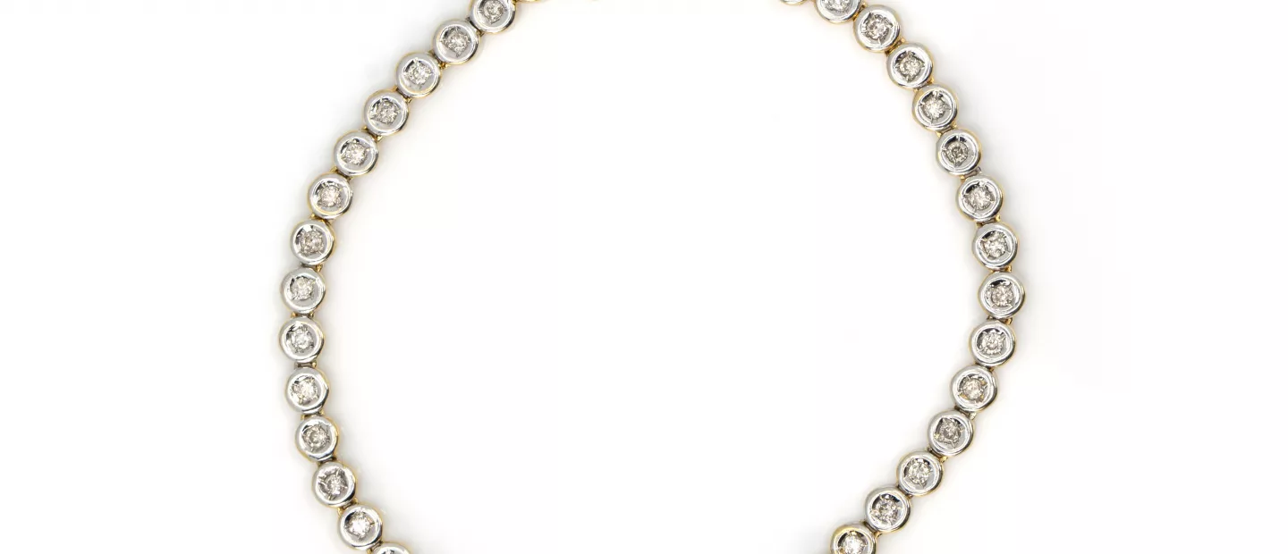 Rivière-Diamantarmband: 750 Gelb- und Weißgold, punziert, 45 Diamanten im Brillantschliff, gesamt 1,00 ct, punziert, J, si-pi, Länge...