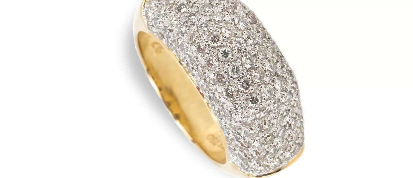Diamantring: 750 Gelbgold, punziert, 129 Diamanten im Brillantschliff, gesamt 2,50 ct, punziert, H, vs-pi, RW 58, Gewicht ca. 14,4 g,...