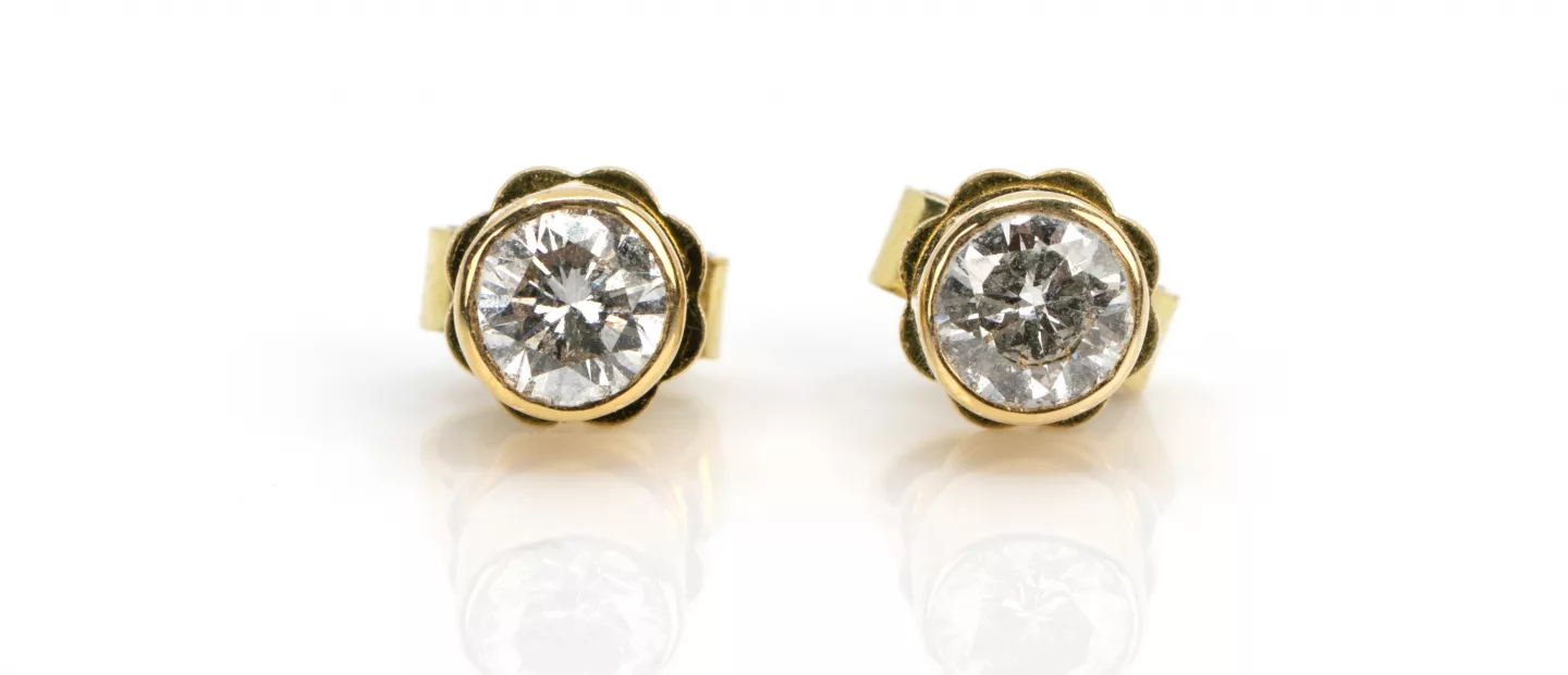 Paar Solitär-Ohrstecker: 750 Gelbgold, punziert, jeweils ein Diamanten im Brillantschliff, gesamt 0,65 ct, G, if, Gesamtgewicht ca....