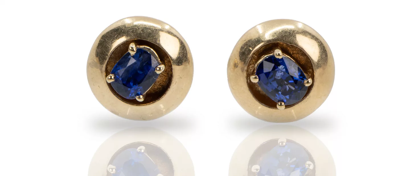 Paar Saphir-Ohrstecker: 585 Gelbgold, geprüft, jeweils 1 Saphir im Ovalschliff, gesamt ca. 1,75 ct, Saphire hinterlegt mit abnehmbaren...