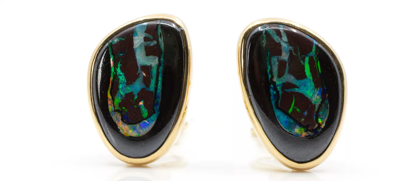 Paar Opal-Ohrstecker: 750 Gelbgold, punziert, jeweils ein Boulder-Opal, gesamt ca. 6,00 ct, Ohrstecker 1,9 x 1,3 cm, Gesamtgewicht ca....