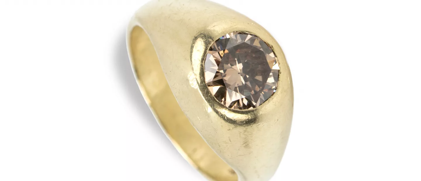 Diamantring: 585 Gelbgold, punziert, Diamant im Brillantschliff, ca 1,50 - 1,55 ct, cognacfarben/orange-brown, si, RW 57, Gewicht ca.