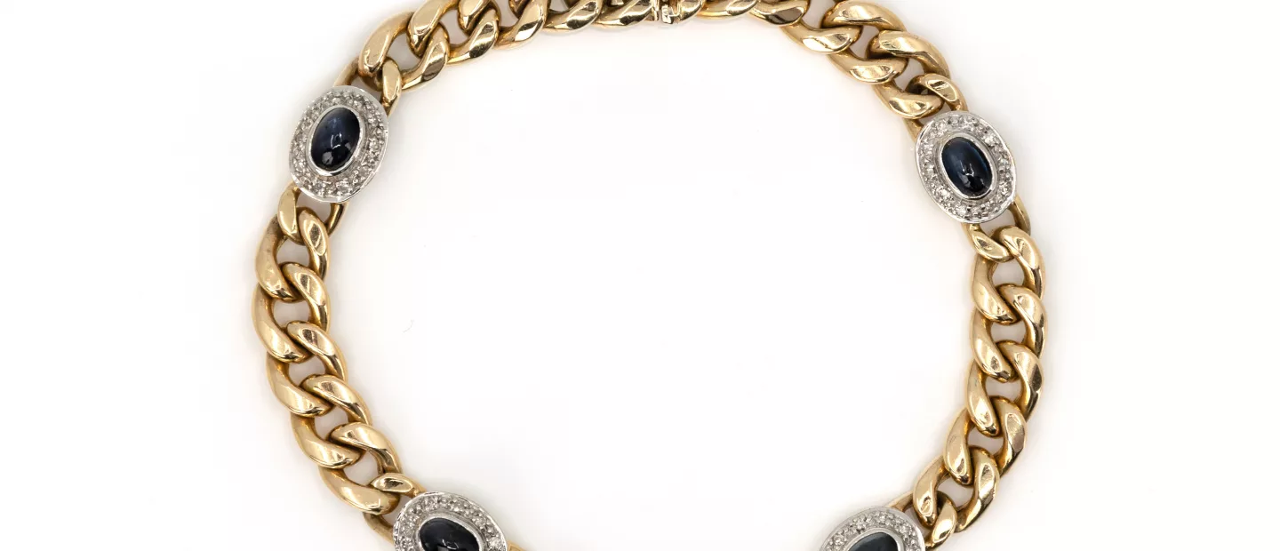 Panzerarmband mit Saphircabochons: 585 Gelb- und Weißgold, punziert, 40 Diamanten im Brillantschliff, gesamt ca. 0,40 ct, 4...