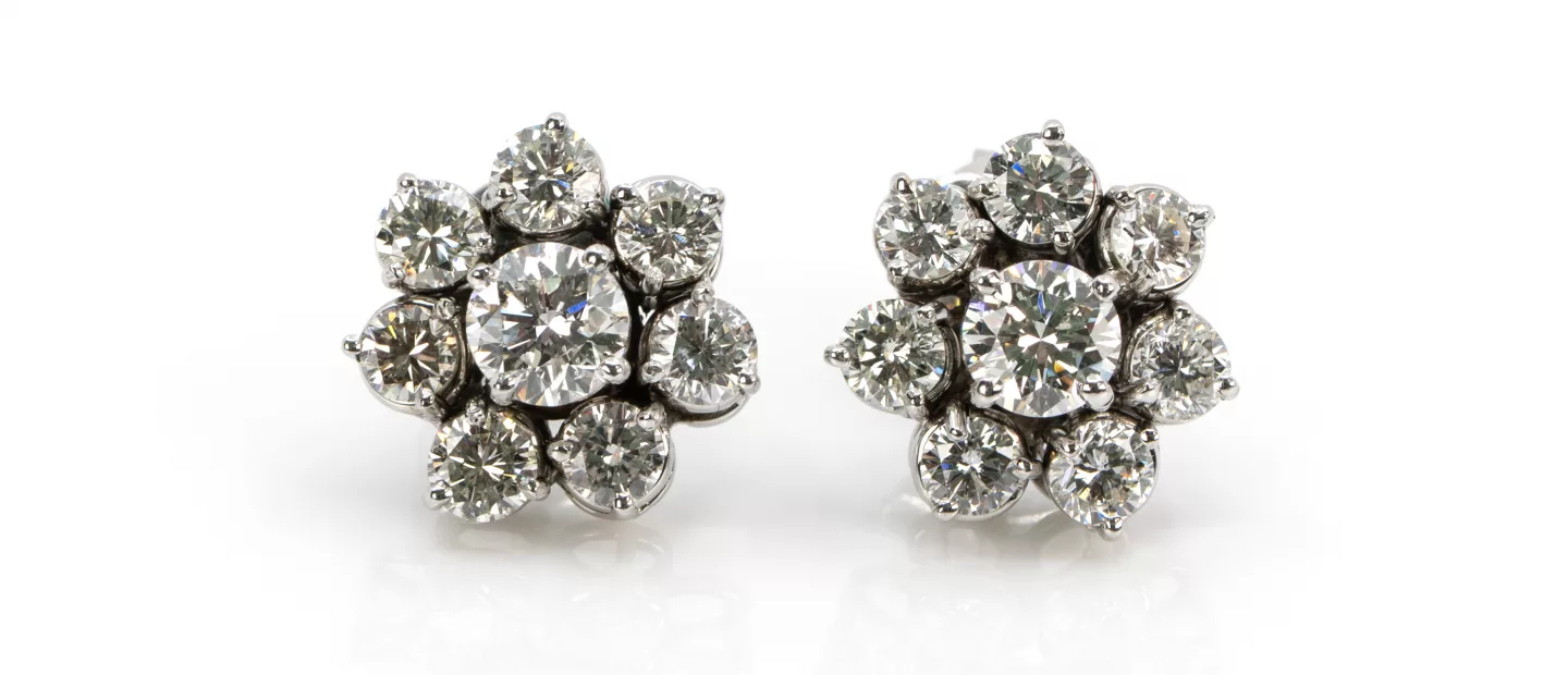 Paar Diamant-Ohrstecker: 585 Weißgold, geprüft, je Ohrstecker 8 Diamanten im Brillantschliff, die beiden mittleren Diamanten jeweils...