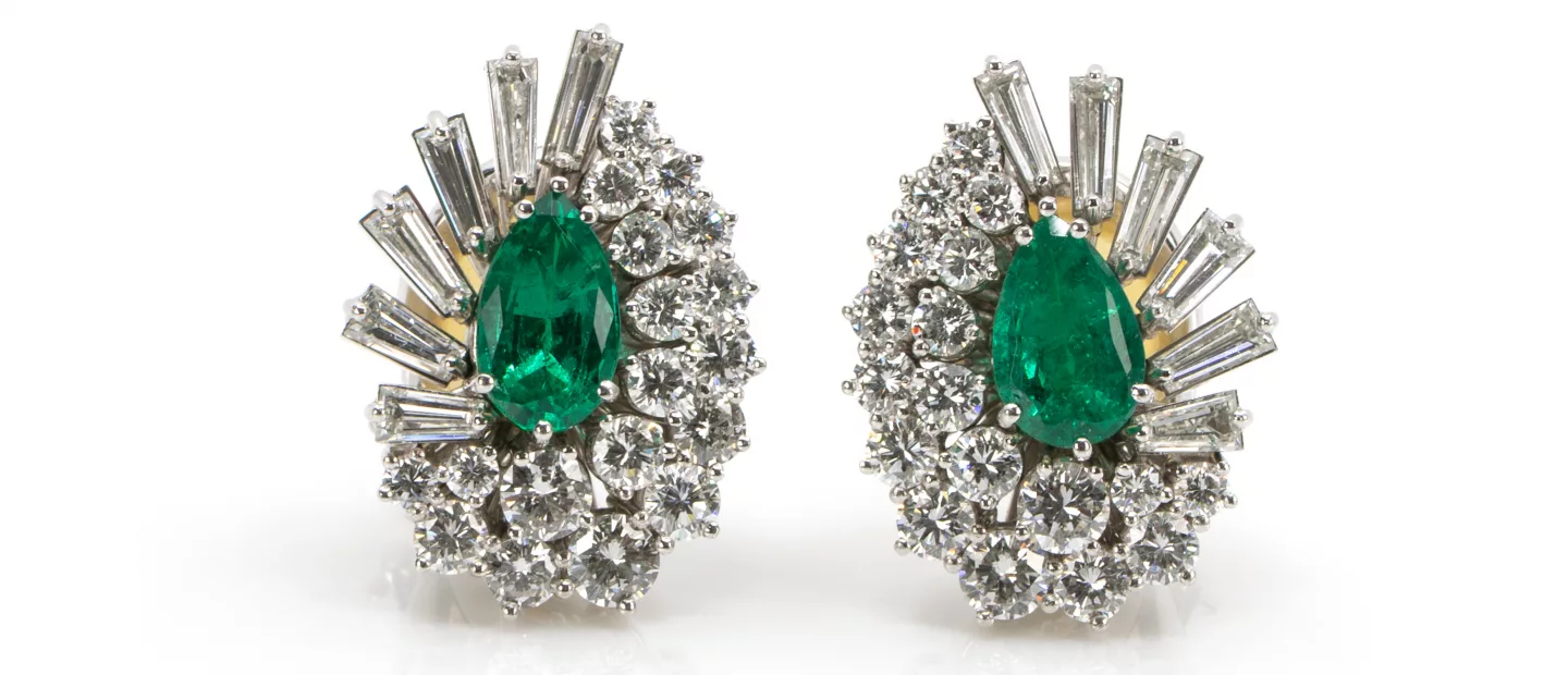 Diamant-Smaragdohrclips: Juwelier Weyersberg, Düsseldorf, 750 Weißgold, punziert, dazu Juwelierspunze W, insgesamt 12 Diamanten im...