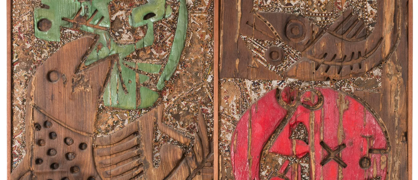 Piraji Sagara (1931 Ahmedabad, Indien - 2014 ebenda): 'Witness of Beginning', Mischtechnik mit Holz, 82 cm x 102 cm Werkmaß,...