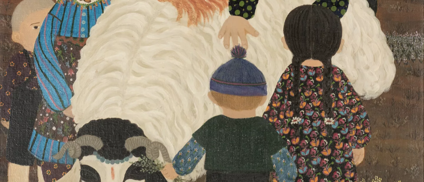 Oya Zaim Katoglu (1940 Türkei): Kinder mit Mohair-Ziege, Öl auf Leinwand, 50 cm x 60 cm Leinwandmaß, signiert, 1972-73 datiert,...
