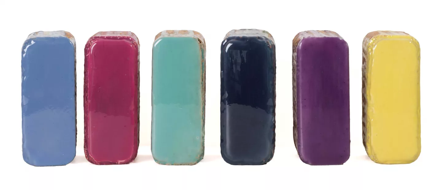 Willi Siber (1949 Eberhardzell) (F): Sechs polychrome Wandobjekte, 6-tlg., Holz, Epoxidharz und Farbpigment, je 15 cm x 6,5 cm x 10 cm...