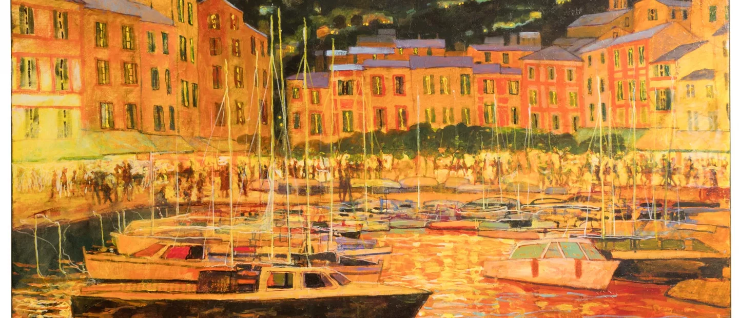 Uwe Herbst (1952 Köln): 'Abend in Portofino', Öl auf Leinwand, 110 cm x 120 cm Leinwandmaß, monogrammiert, verso beti