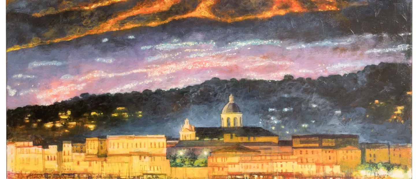 Uwe Herbst (1952 Köln): 'Etnaausbruch', Öl auf Leinwand, 110 cm x 120 cm Leinwandmaß, monogrammiert, verso betitelt, Winter 2020...