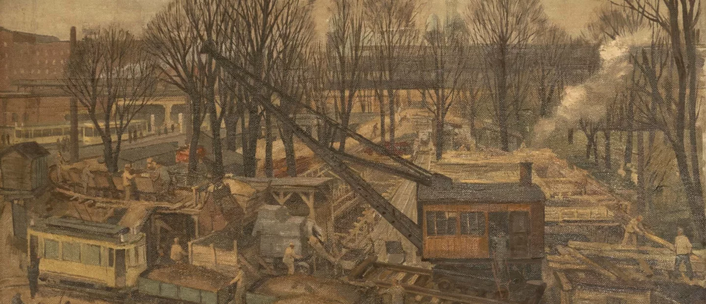 Bernt Rösel (1912 Essen): Ansicht des Essener Hauptbahnhofs, Öl auf Hartfaserplatte, 67 cm x 84 cm Werkmaß, signiert, 1942 datiert,...