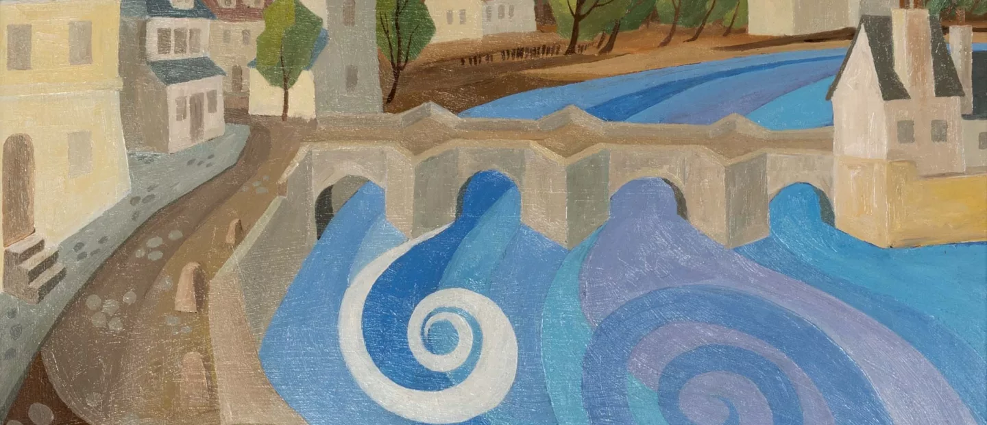 Franz Josef Lipensky (1932 Böhmisch-Leipa - 2023 Köln): Stadt am Fluss, Acryl auf Hartfaserplatte, 56 cm x 70 cm Werkmaß, signiert,...