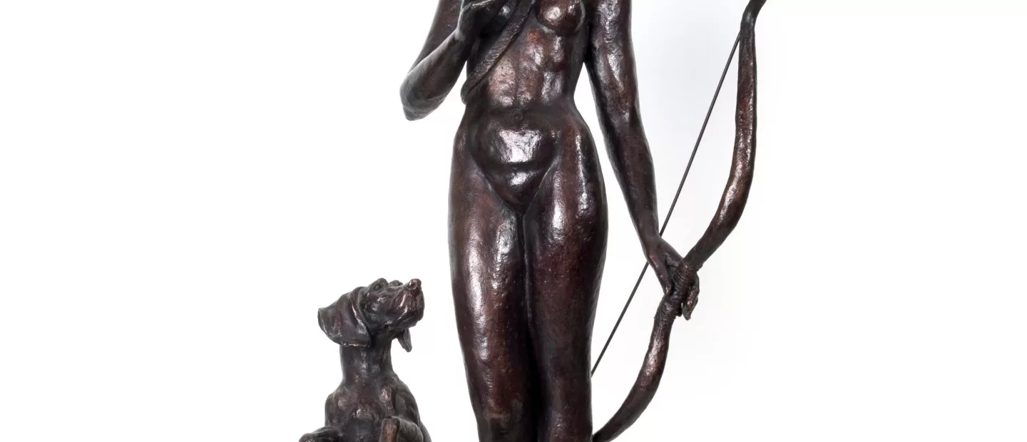 Franz Josef Lipensky (1932 Böhmisch-Leipa - 2023 Köln): Diana, Bronze, goldbraun patiniert, Höhe 75 cm, im Guss signiert, partiell...