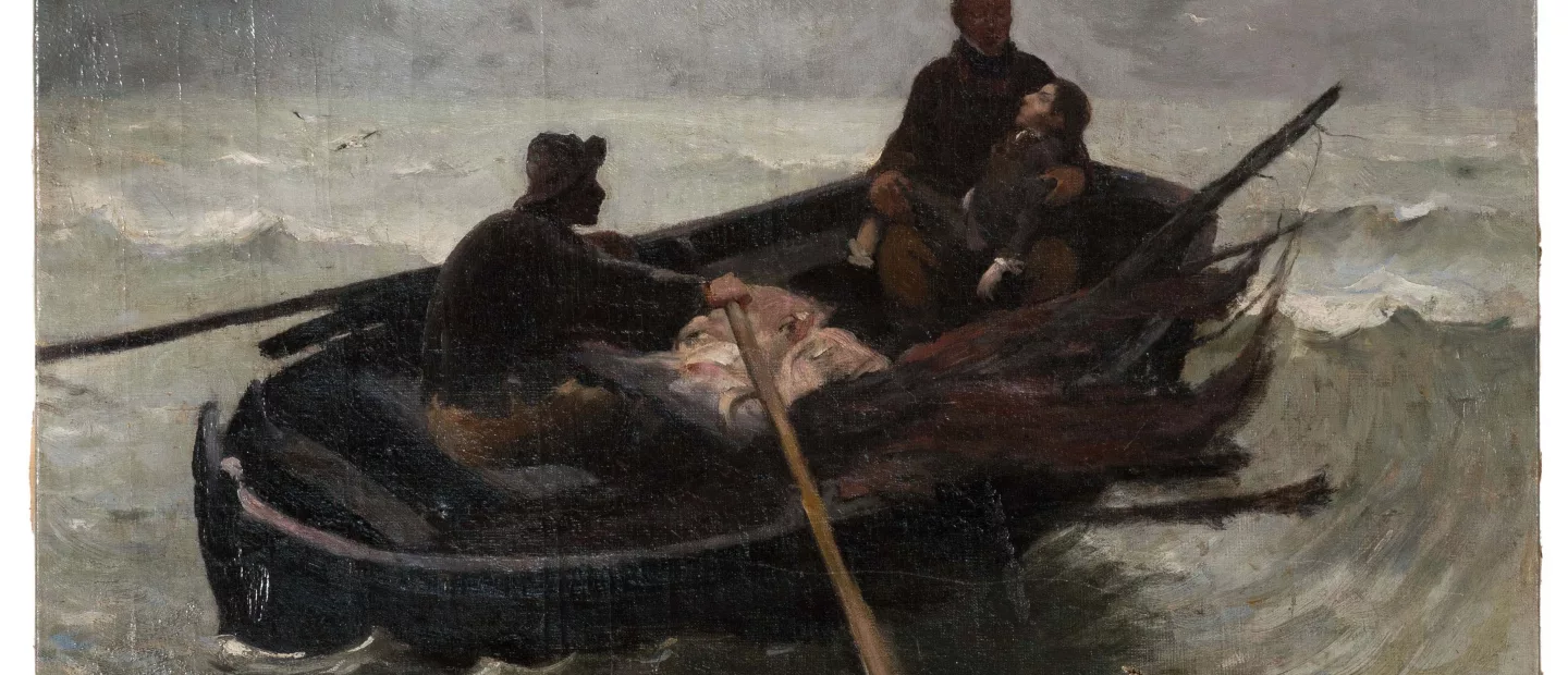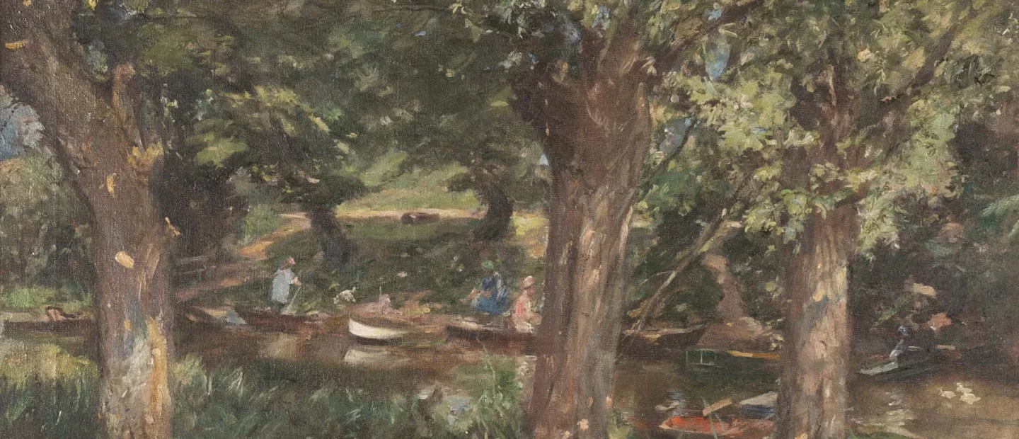 Alexander Ignatius Roche (1861 Glasgow - 1921 Slateford, Edinburgh): Flusslandschaft mit Booten, Öl auf Leinwand, 63 cm x 76 cm...