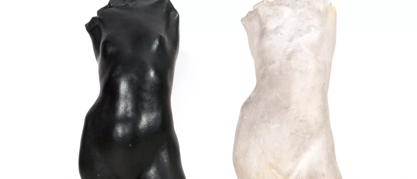 George Minne (1866 Gent - 1941 Sint-Martens-Latem, Belgien): Weiblicher Torso und Gipsmodell, 2-tlg., Weiblicher Torso, Bronze,...