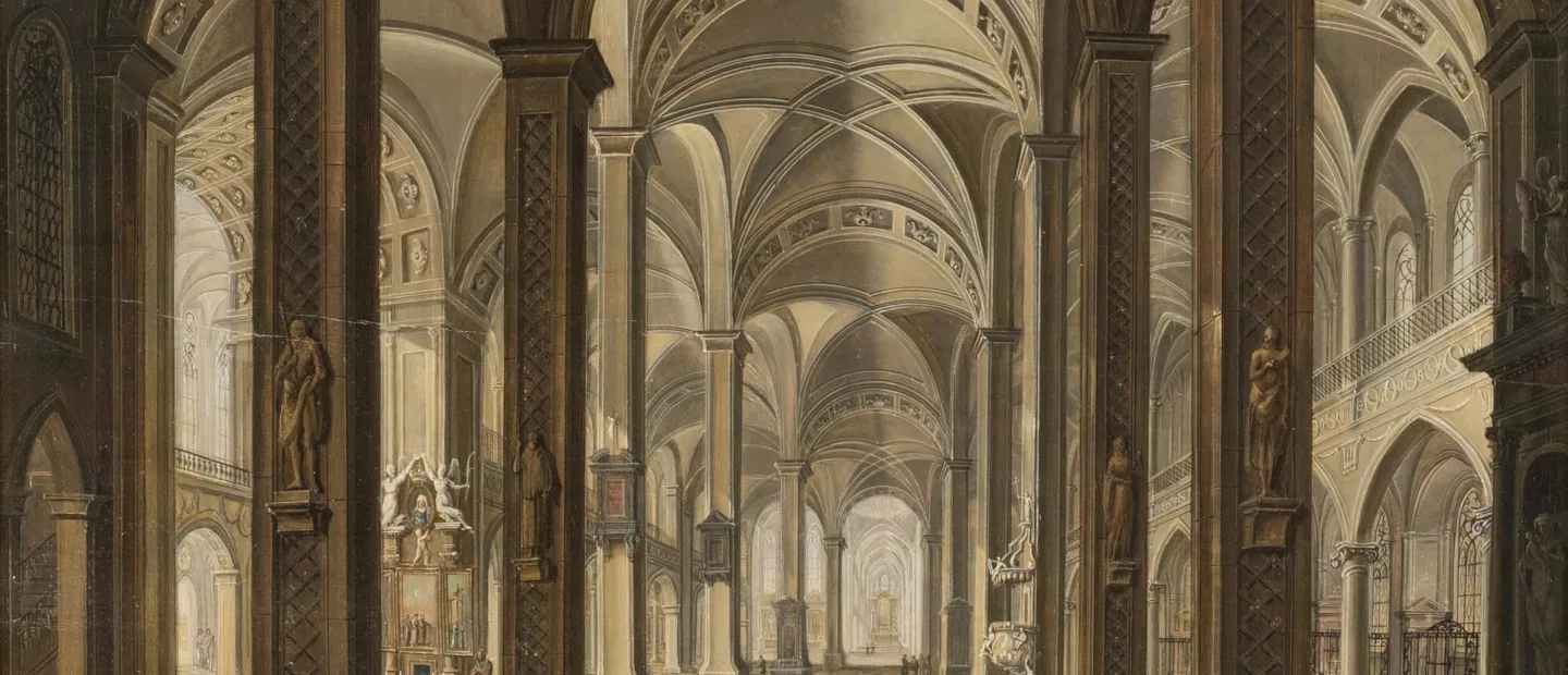 Johann Ludwig Ernst Morgenstern (1738 Rudolstadt - 1819 Frankfurt am Main): Blick in das Innere einer Kathedrale mit elegant...