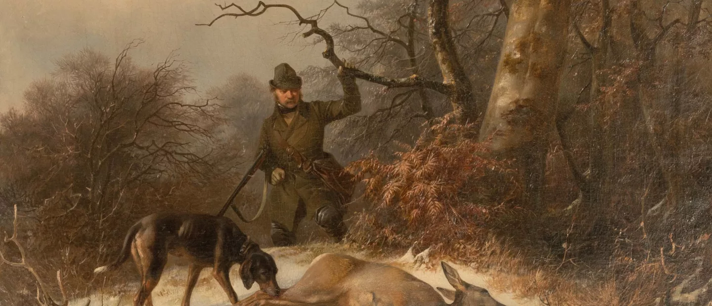 Carl Friedrich Schulz (1796 Selchow - 1866 Neuruppin): Erfolgreiche Jagd, Öl auf Leinwand, 48 cm x 63 cm Leinwandmaß, signiert, 1837...