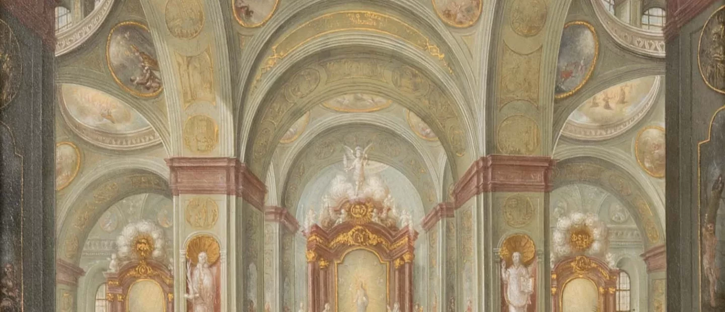 Gabriel Ambrosius Donath (1684 Grunau - 1760 Dresden): Kirchenchor mit rückseitiger Wappenkartusche für die Kurfürstin Maria Josepha...