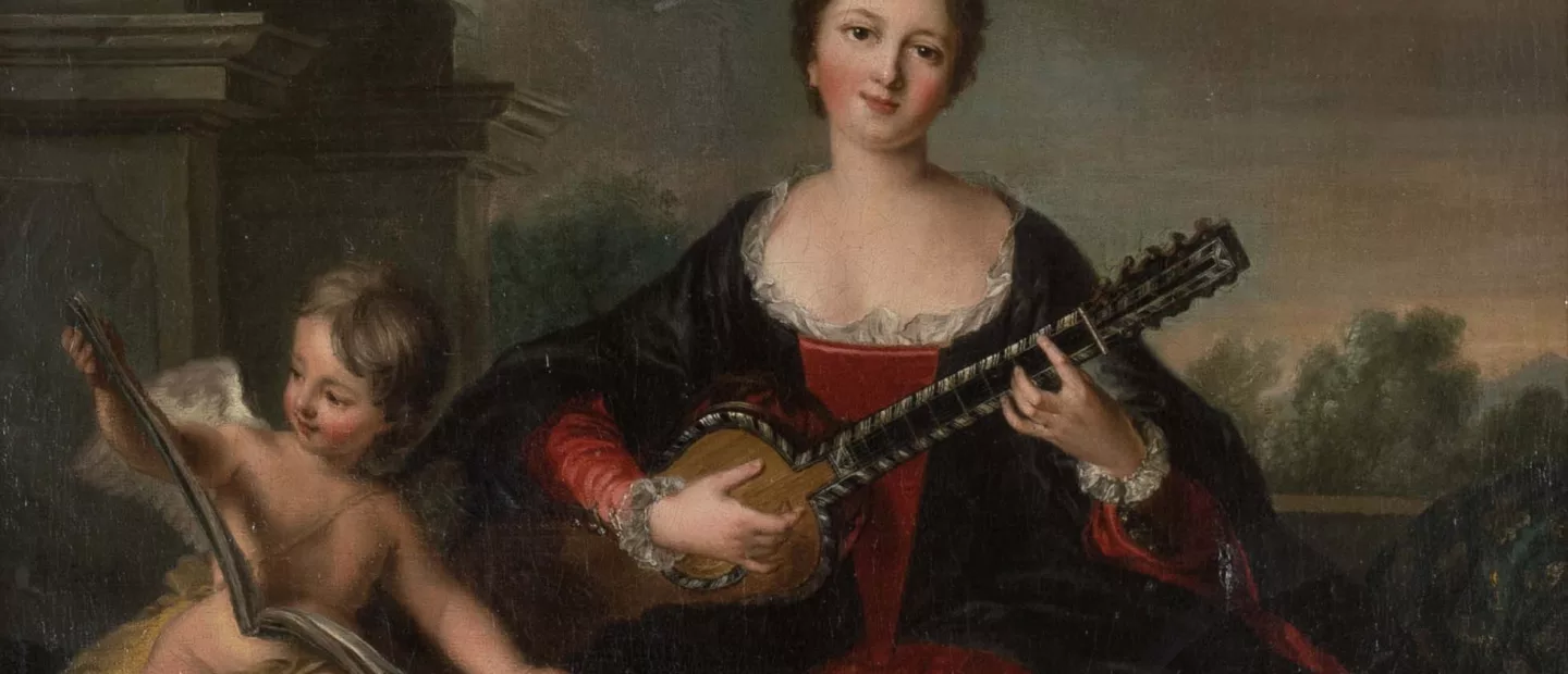 nach Jean-Marc Nattier (1685 Paris - 1766 ebenda): Mademoiselle de Beaujolais beim Spielen einer Gitarre, Öl auf Leinwand, 44,5 cm x...