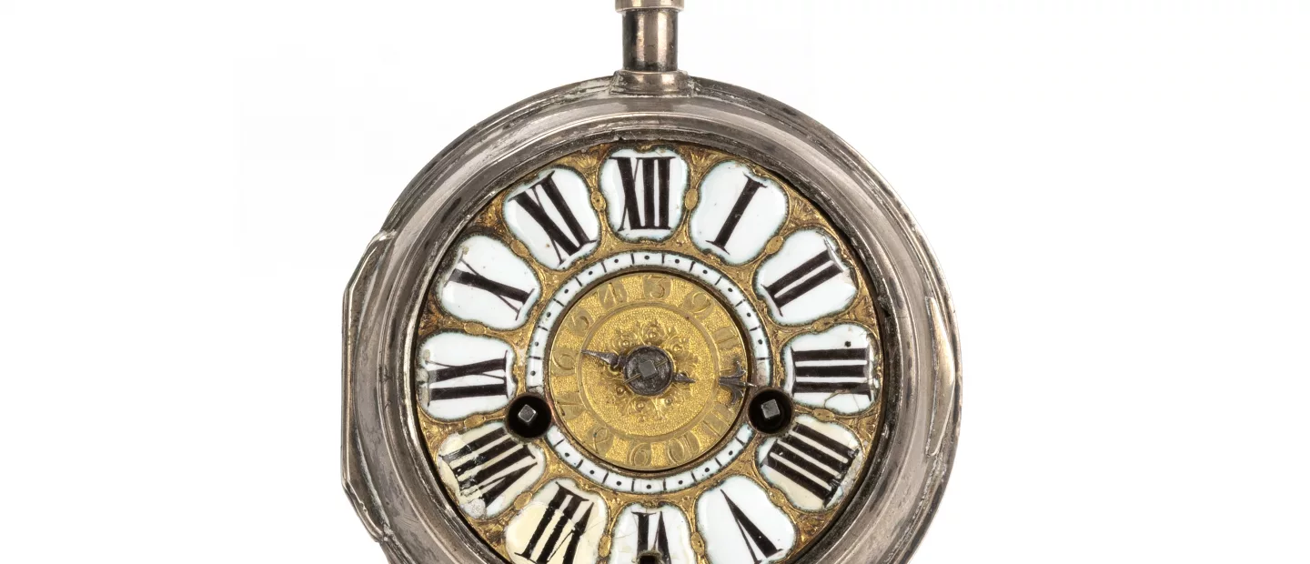 Einzeigrige Silberuhr 'Oignon': 16. Jahrhundert, Francois Dentand a Geneve, Schlüsselaufzug, Emaille-Kartuschenzifferblatt mit...